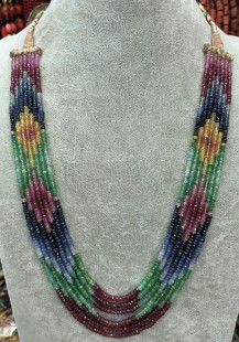 İnci Zümrüt ve Elmas Uzun Dolamalı Kolye
