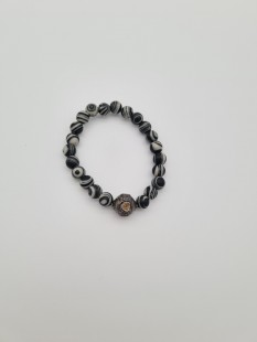 Siyah Beyaz Akik, Elmas Top Lastikli Bilezik