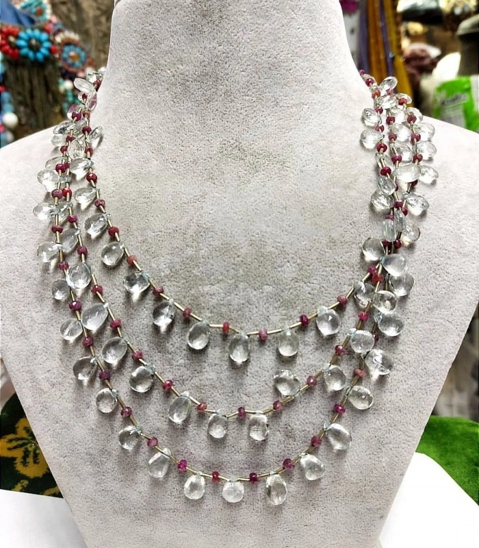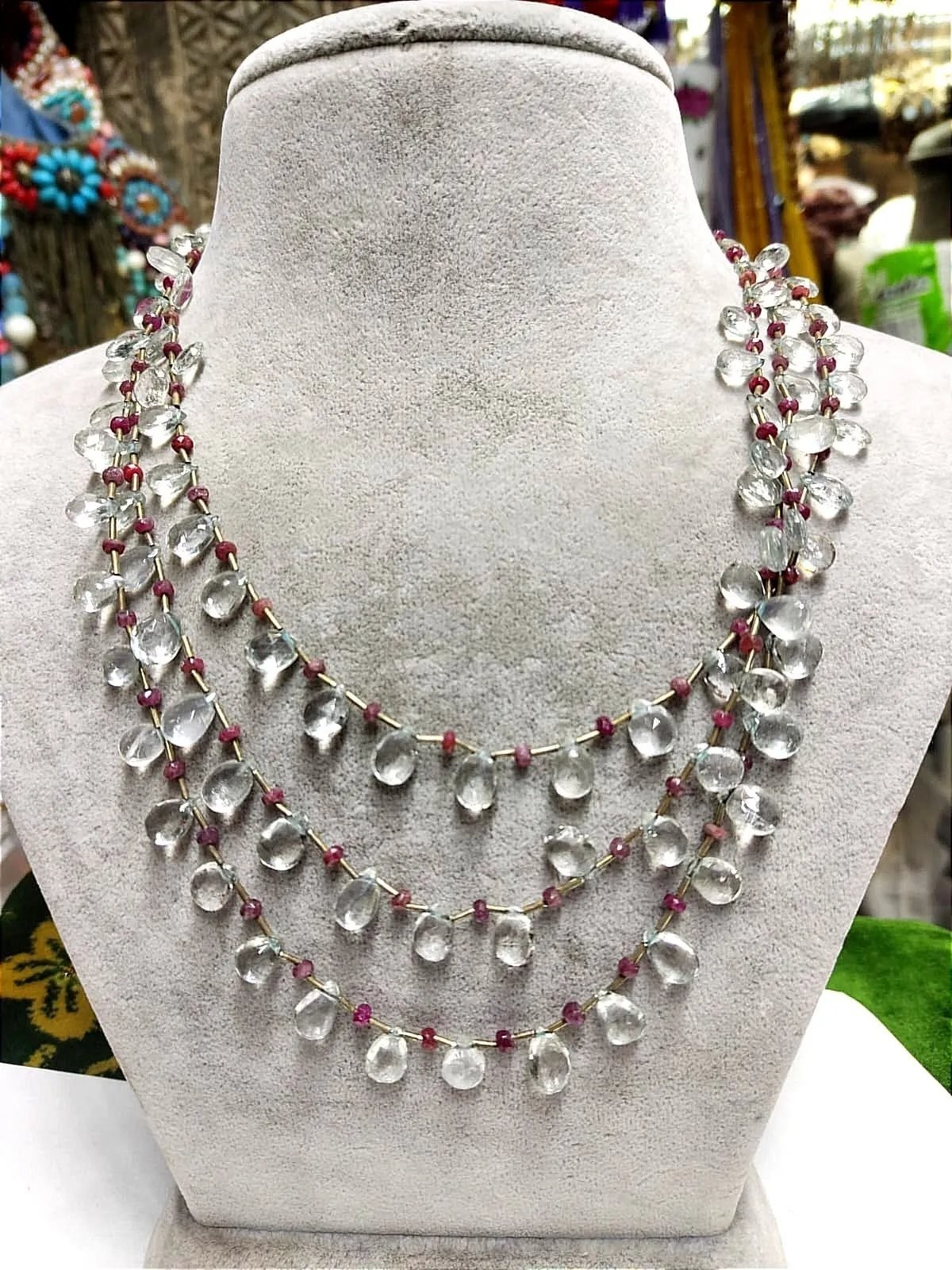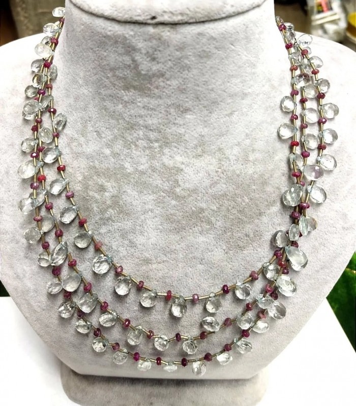 3 lü Sıra Akuamarin ve Yakut Kolye.