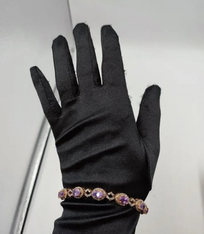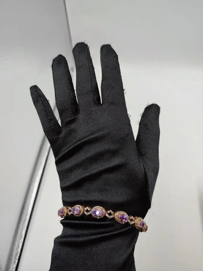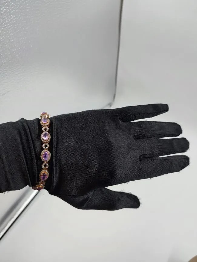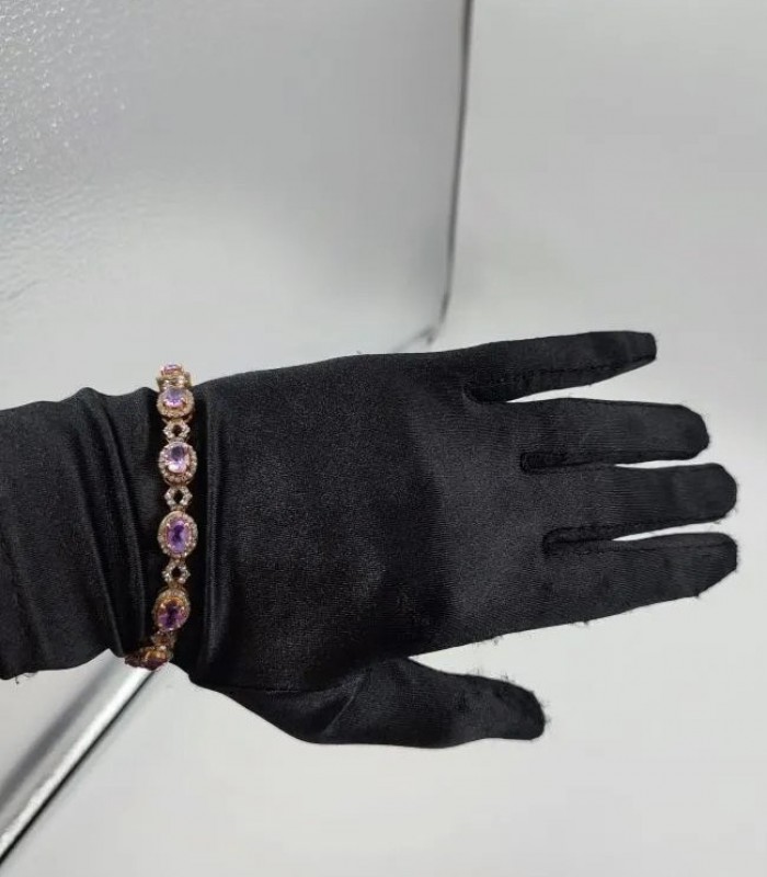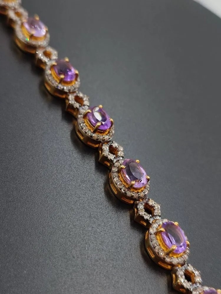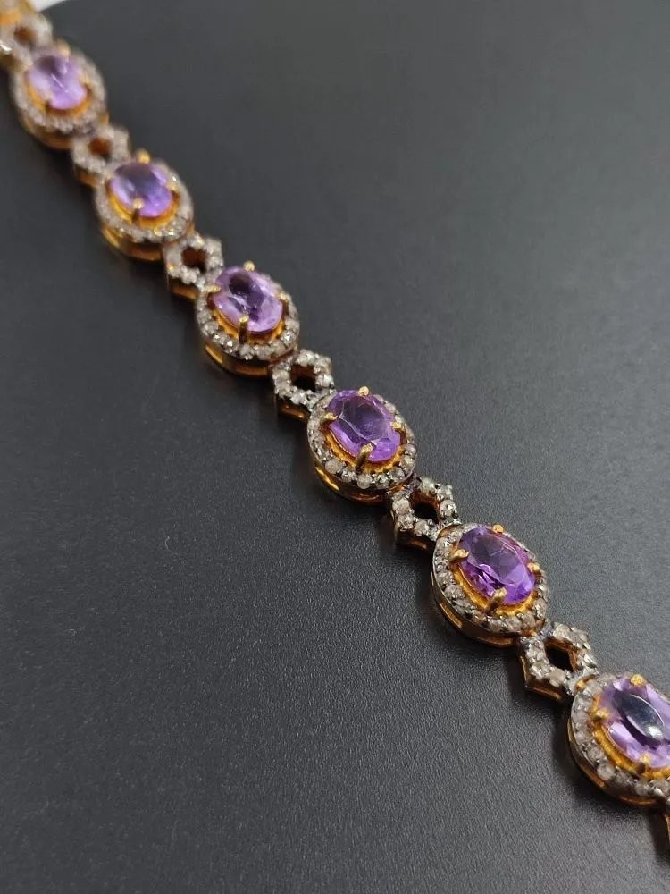 Orjinal Elmas ve Amatist Taşlı Harika İşçilikli 925 Ayar Gümüş Bileklik.