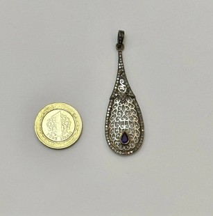 925 Gümüş, Amatist v Elmas Kolye Ucu