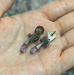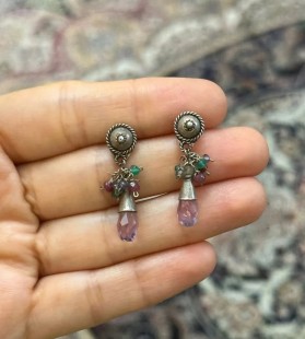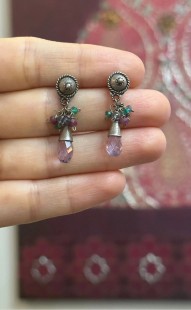 925 Gümüş, Doğal Amatist Taşlı Küpe