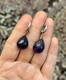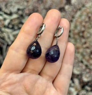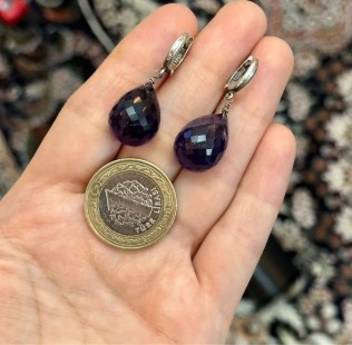 Doğal Amatist v Gümüş Sallantılı Küpe