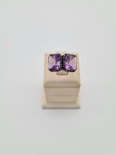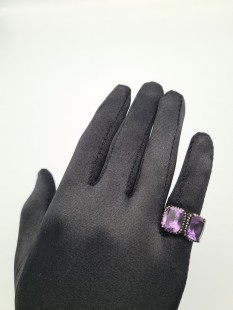 925 Ayar Gümüş, Amatist ve Elmas Yüzük