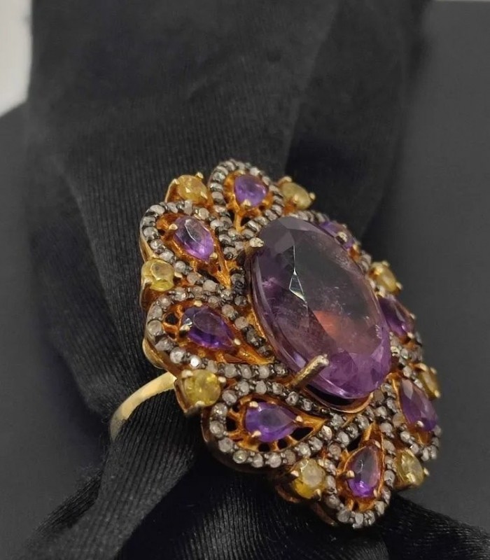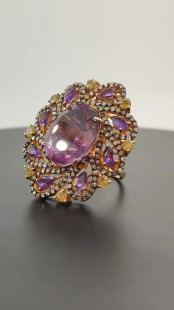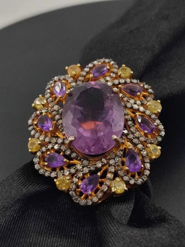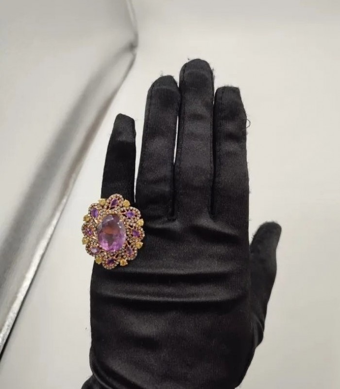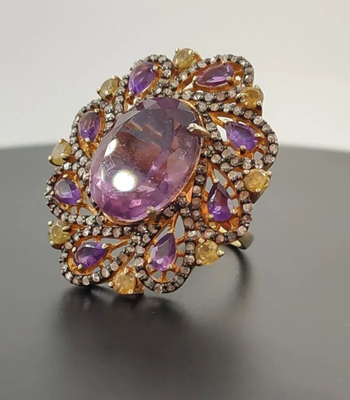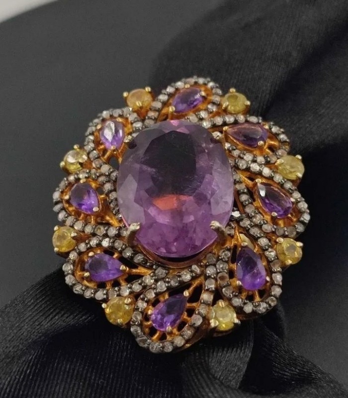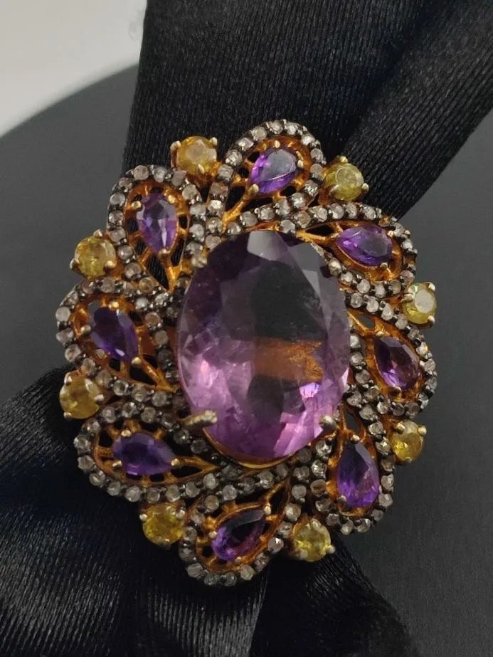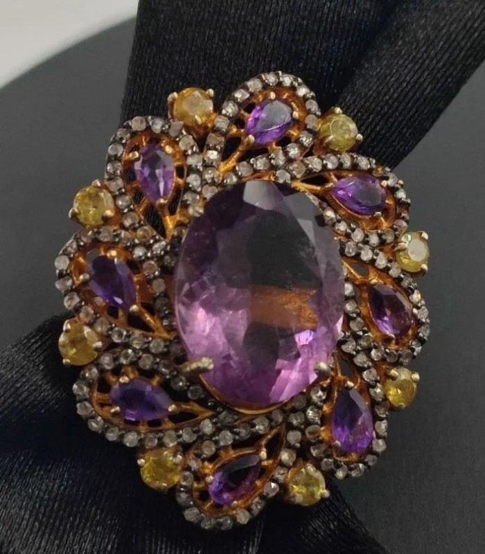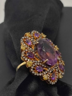 Amatist Taşı v Elmas Harika Gümüş Yüzük. Kaliteli Taşlarla Kaliteli İşçilikli Muhteşem Yüzük.
