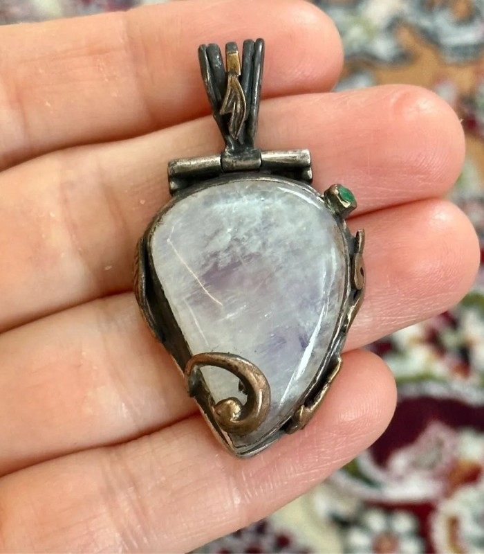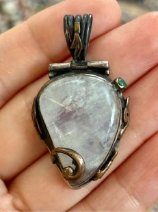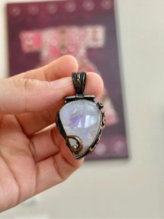 925 Gümüş, Doğal Ay Taşı Kolye Ucu
