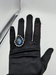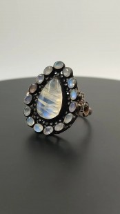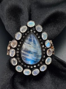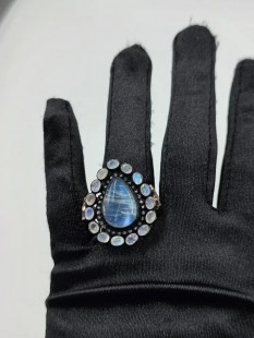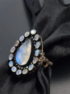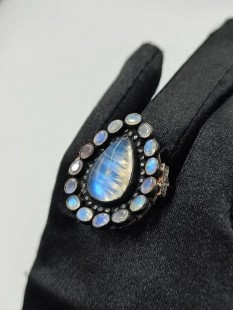 925 Gümüş, Doğal Ay Taşı v Elmas Yüzük