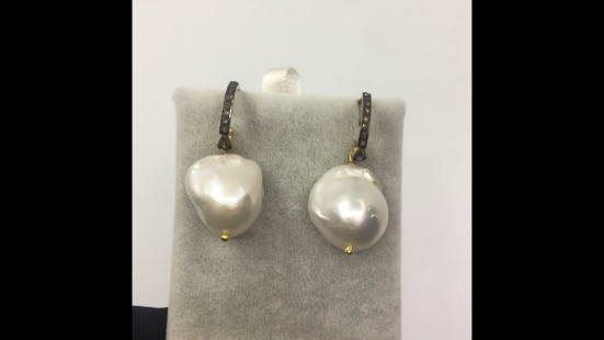 925 Ayar Gümüş, Barok İnci ve Elmas Küpe