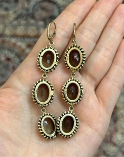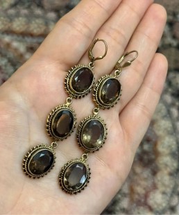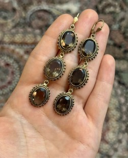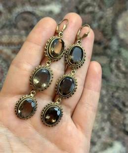 925 Gümüş, Doğal Dumanlı Kuvars Taş Tasarımlı Küpe