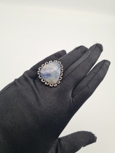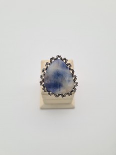 925 Ayar Gümüş, Düz Kesim Safir ve Elmas Yüzük