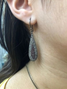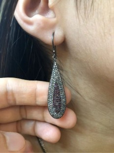 925 Ayar Gümüş, Granat (Lal) ve Elmas Küpe