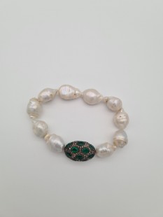 Doğal İnci, Elmas Top Üzeri Yeşim Taşlı Lastikli Bilezik