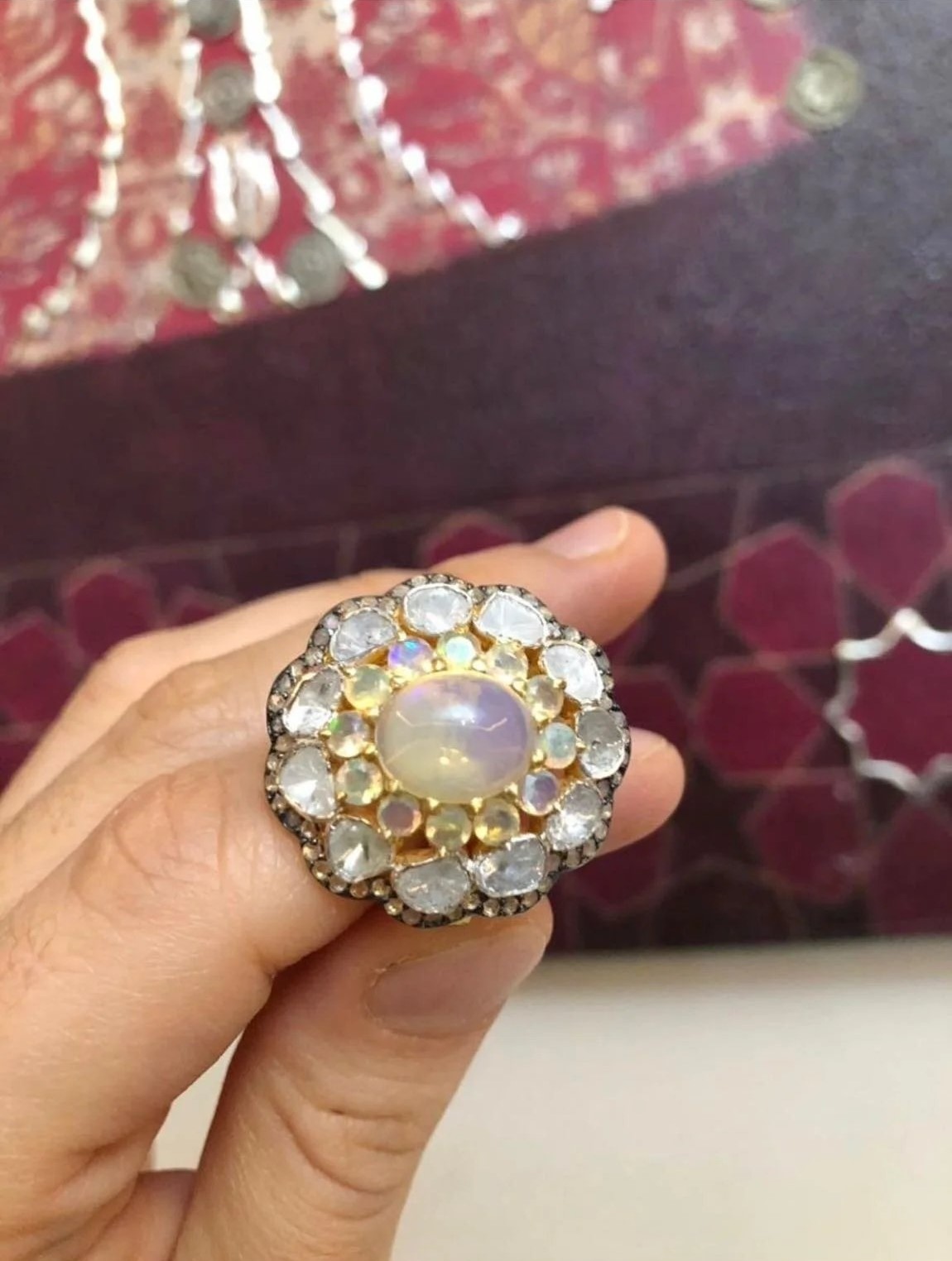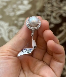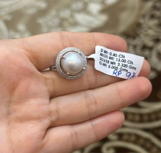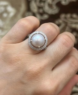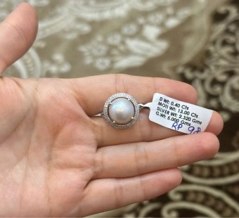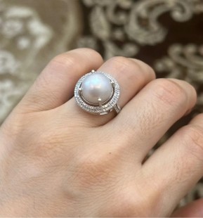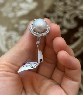 925 Gümüş, Doğal İnci v Elmas Yüzük