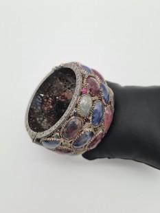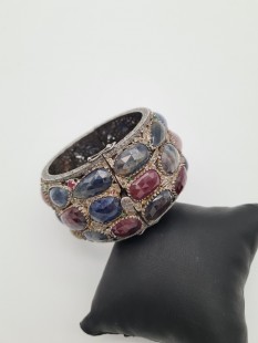 925 Ayar Gümüş, Komple Slice Safir ve Minik Yakut, Zümrüt Taşlı Elmas Bileklik