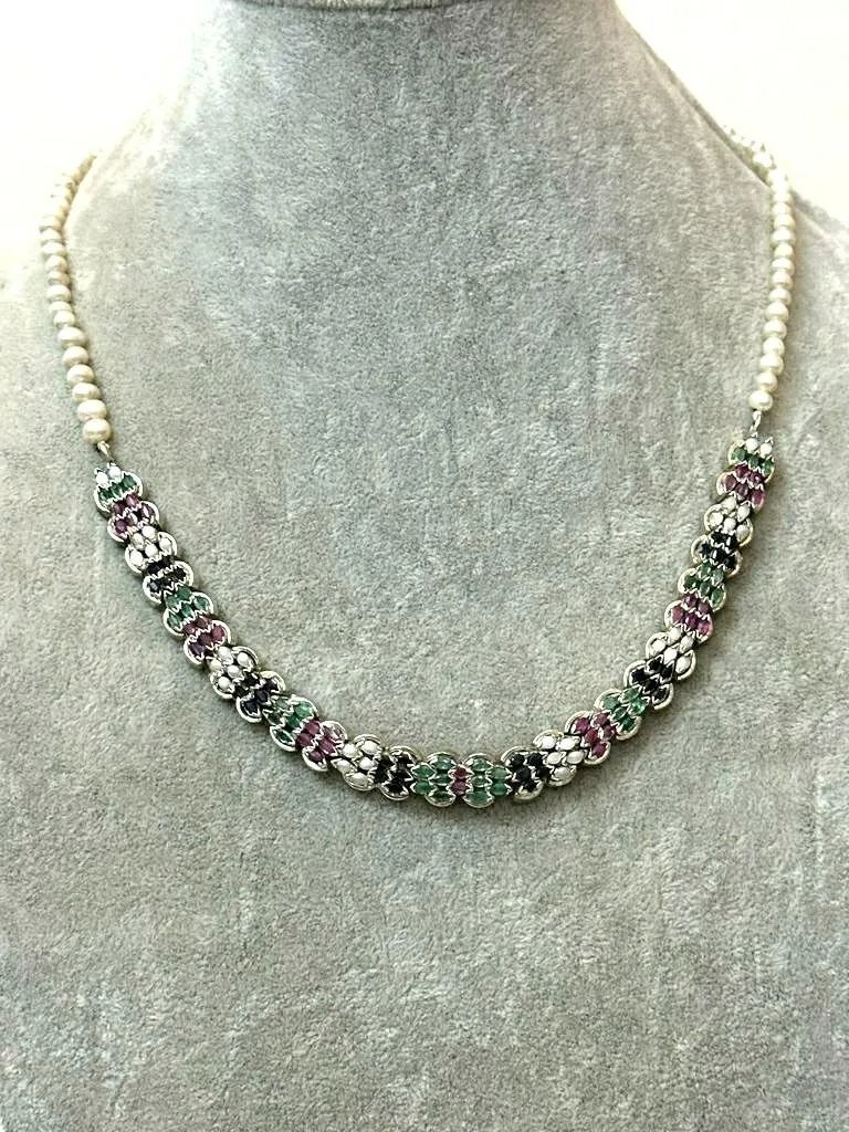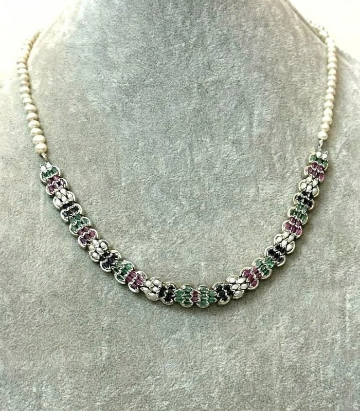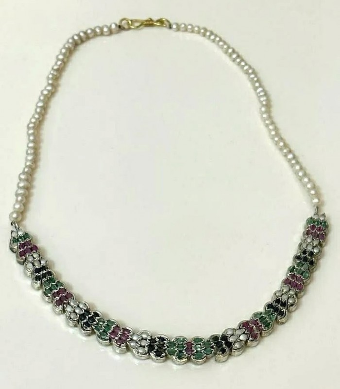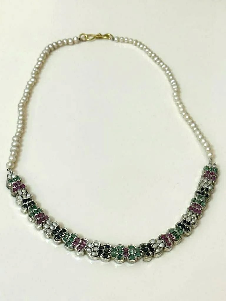 Orjinal Yakut Zümrüt Safir Taşlı Kolye. İnci Dizili Yüksek Kalite Taşlı Kolye. Metali Düşük Ayar Gümüşten Yapılmıştır. Taşların Daha Sağlam Sabit Olması İçin.