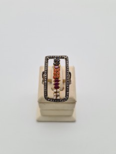 925 Ayar Gümüş, Yakut, Safir, Mercan, İnci ve Elmas Yüzük
