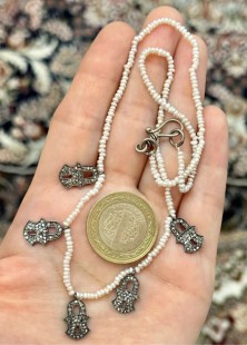 925 Ayar Gümüş, Kum İncisi ve Elmas Kolye