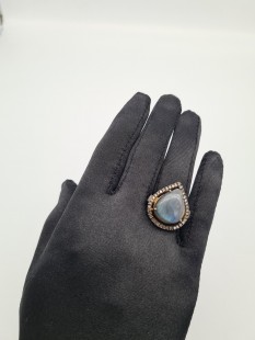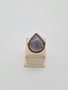 925 Ayar Gümüş, Labradorit ve Elmas Yüzük