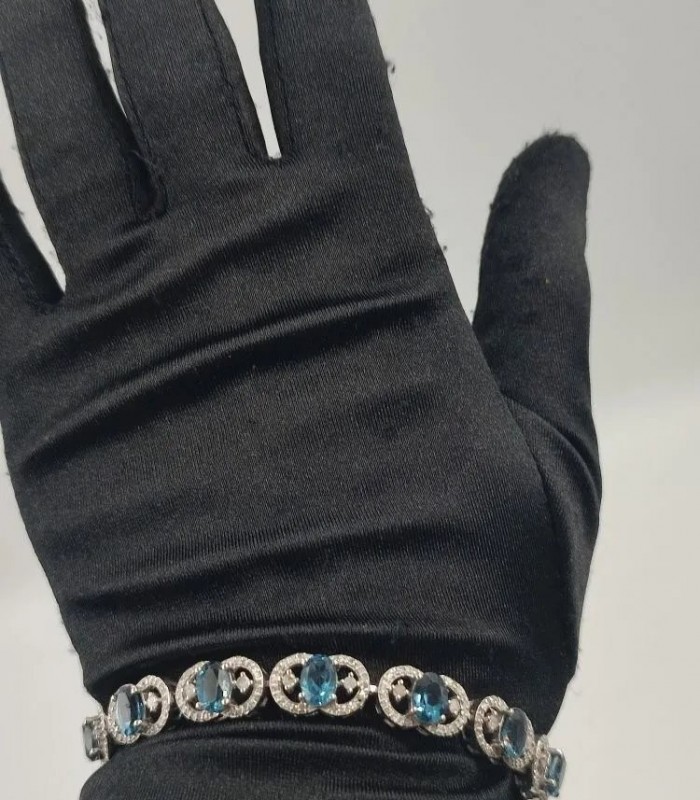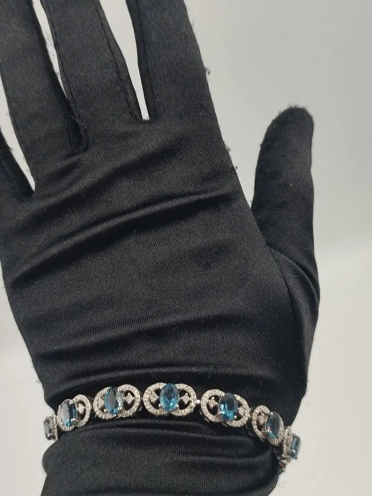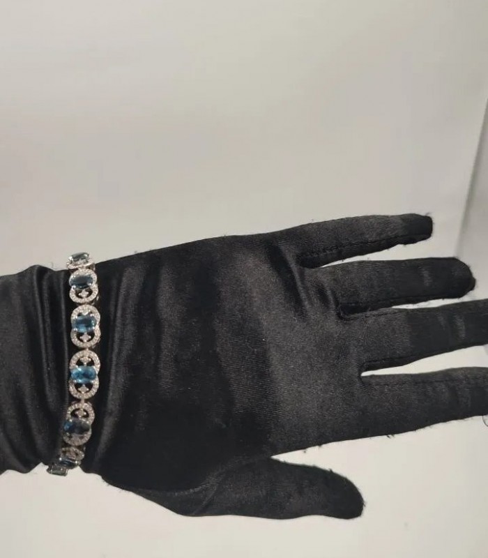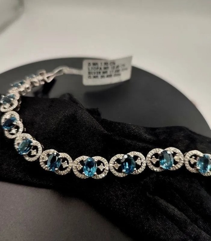 Orjinal Mavi Topaz v Elmas Gümüş Bileklik.