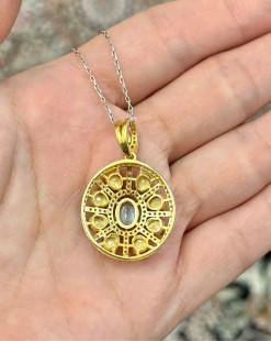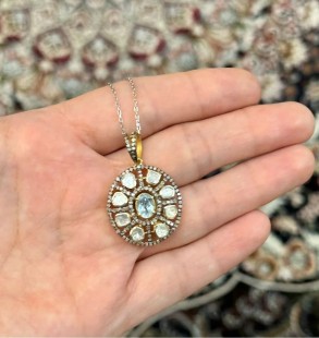 925 Gümüş, Mavi Topaz v Polki Elmas Kolye