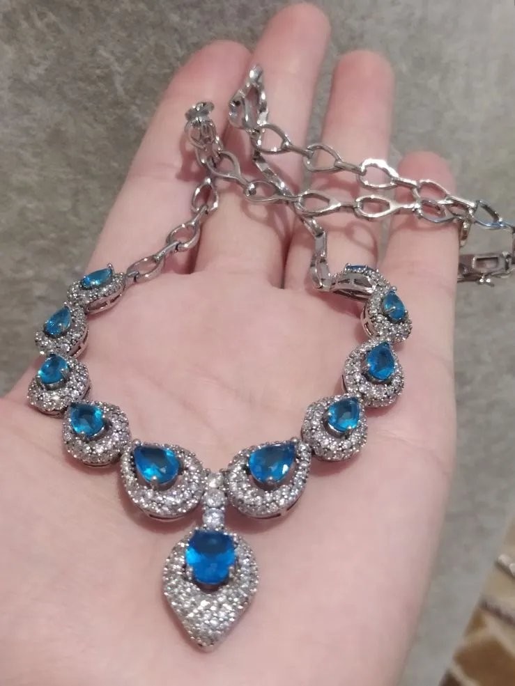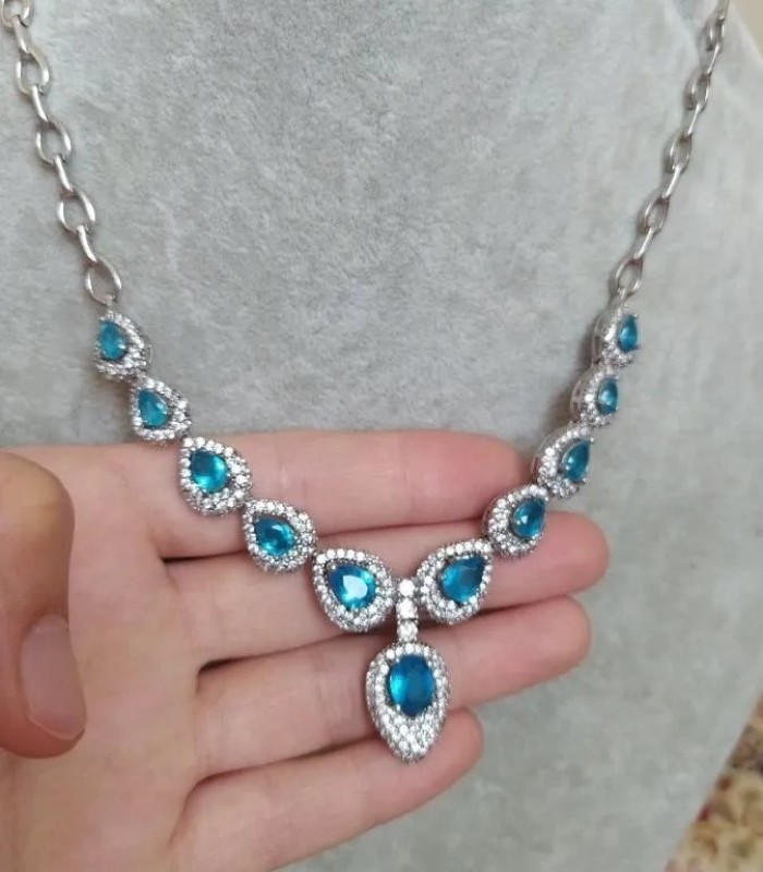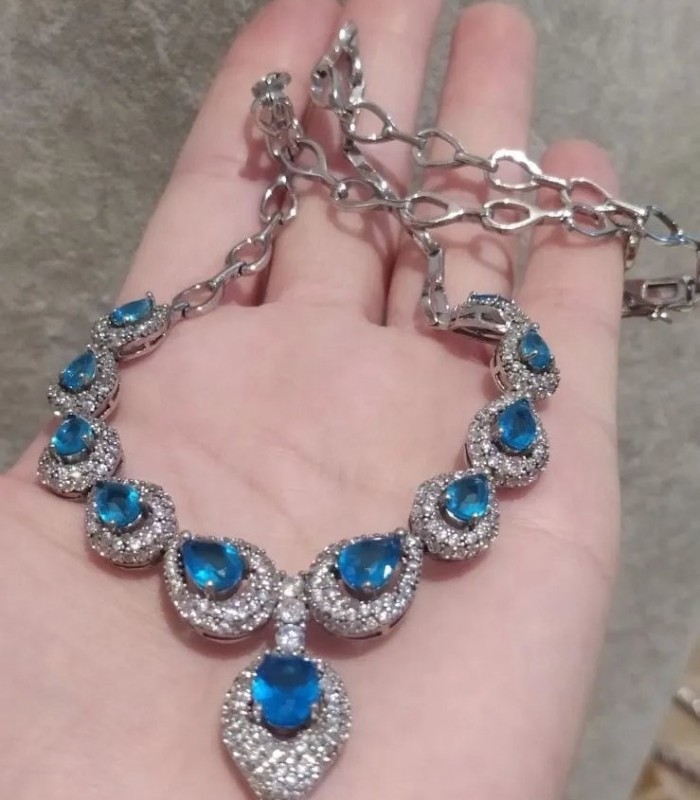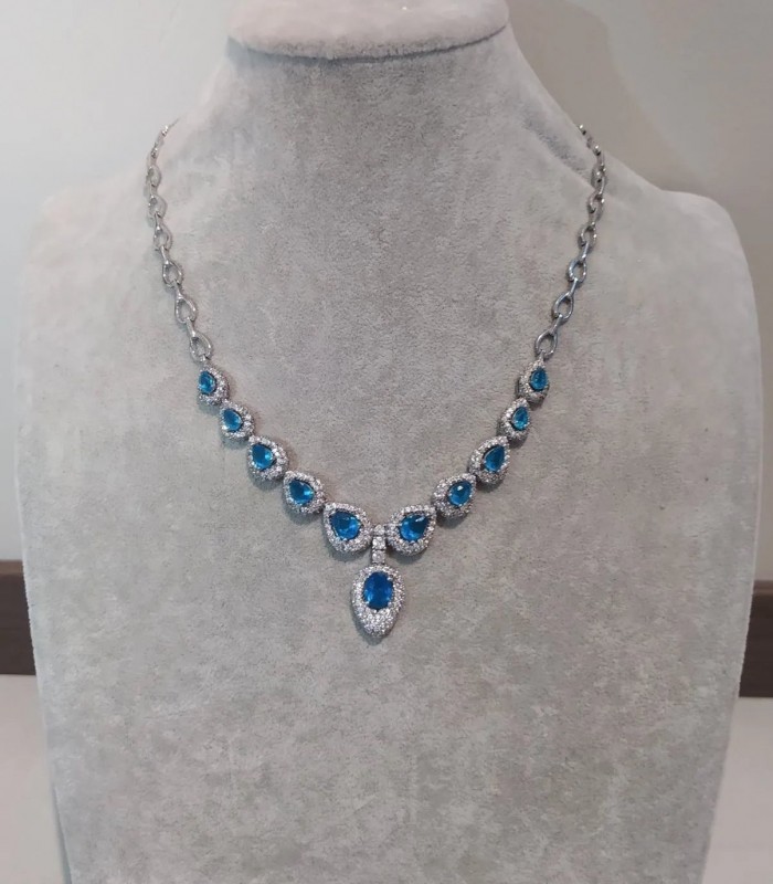 Mavi Topaz ve Zirkon Taş Tasarımlı Kolyeniz.