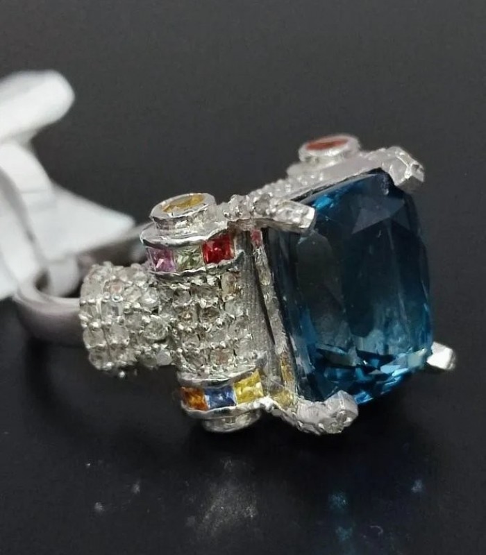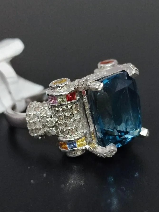 Üst Kalite Mavi Topaz ve Renkli Safir ve Elmaslı,