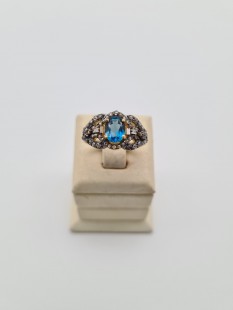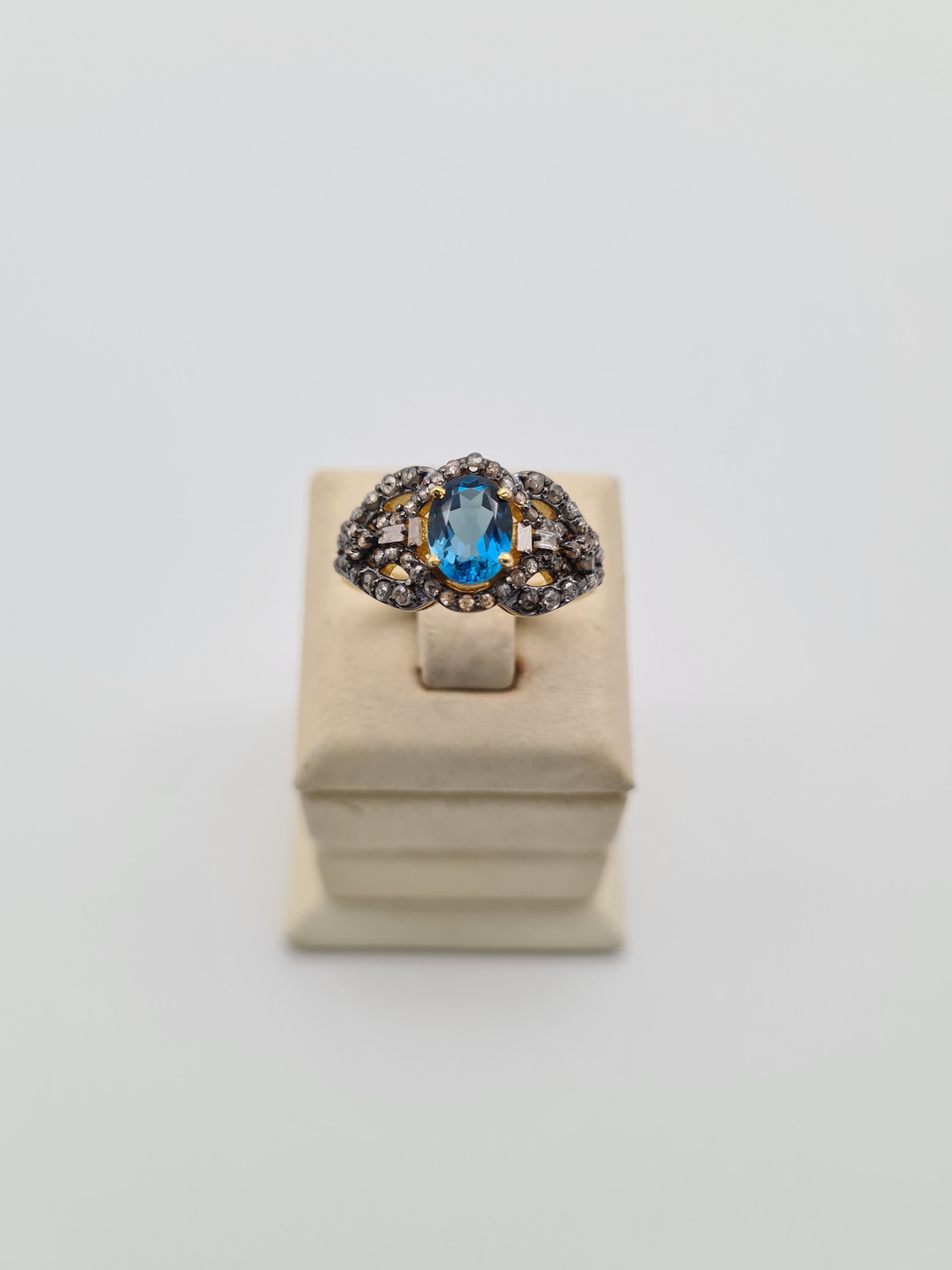 925 Ayar Gümüş, Mavi Topaz ve Elmas Yüzük