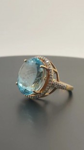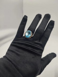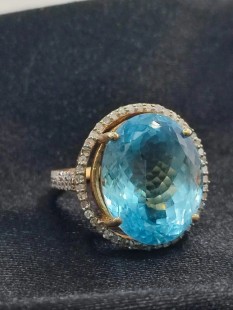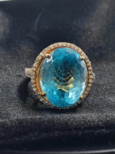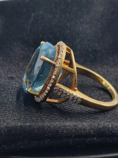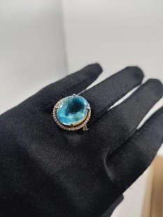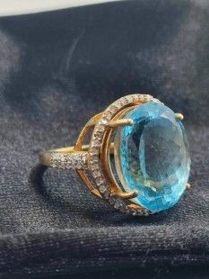 925 Gümüş, Doğal Mavi Topaz v Elmas Yüzük