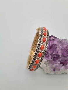 925 Ayar Gümüş, Elmas ve Mercan Taşlı Bileklik