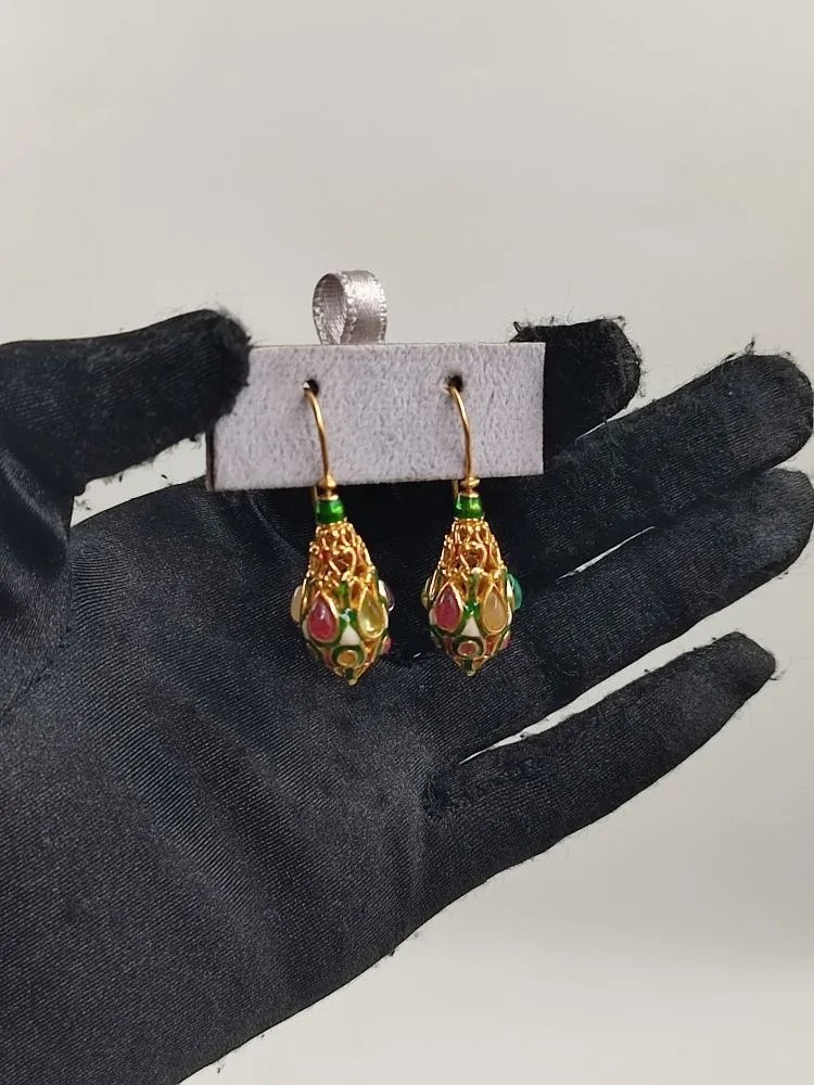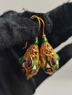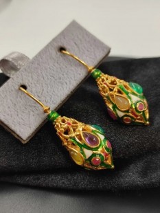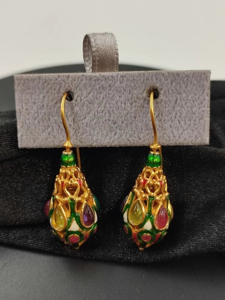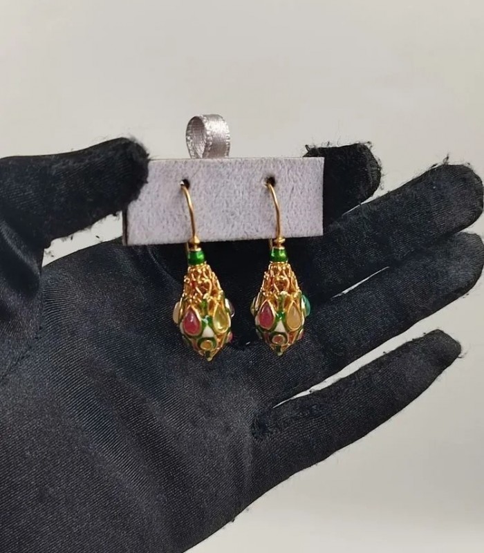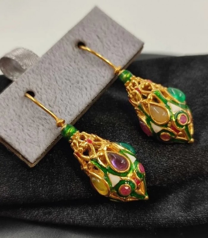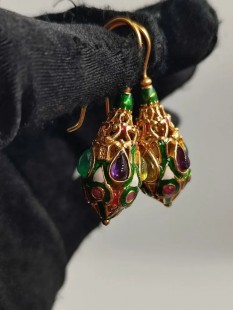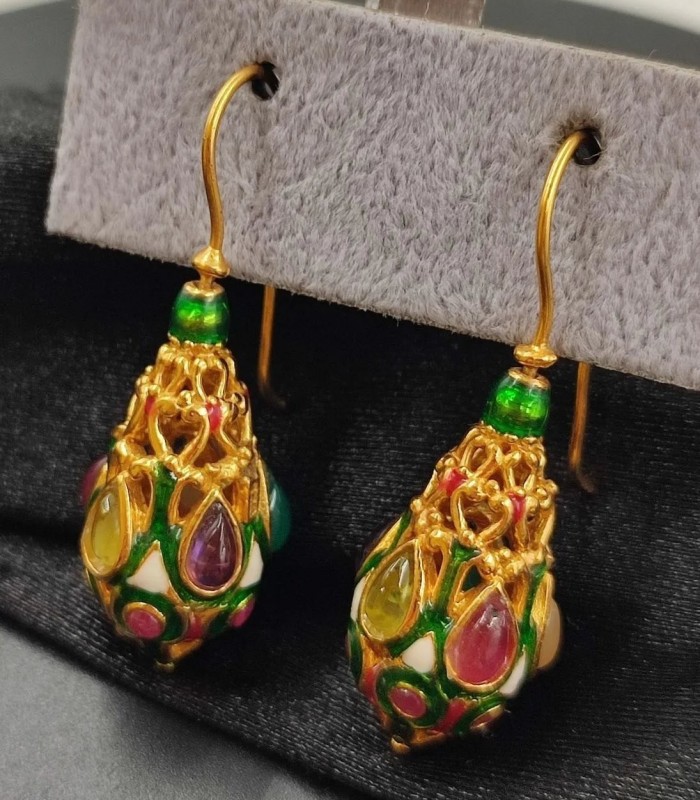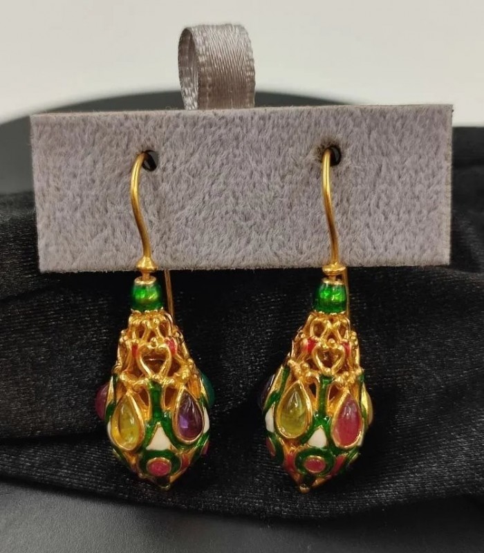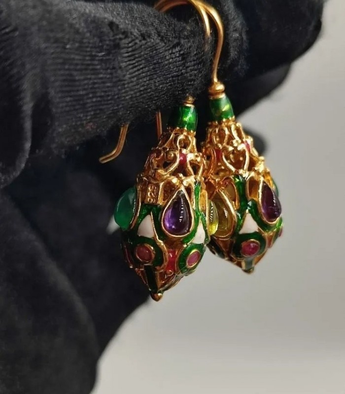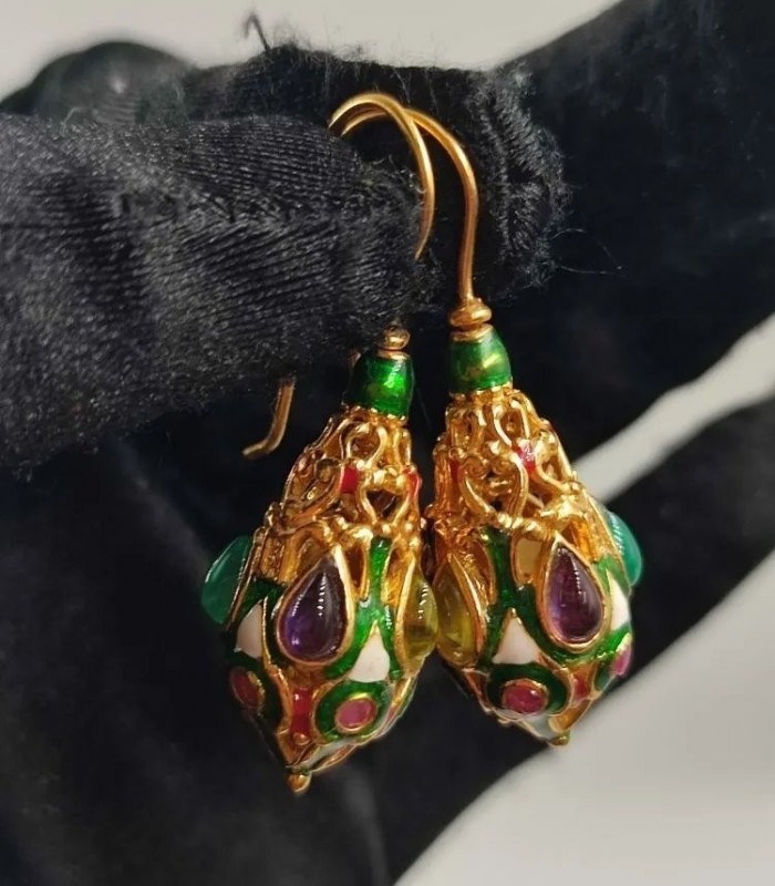 YAKUT, TURMALİN, AMATİST, YEŞİM TAŞLARIYLA MİNE ÇALİŞMASİ YAPILMIŞ HARİKA KÜPE.