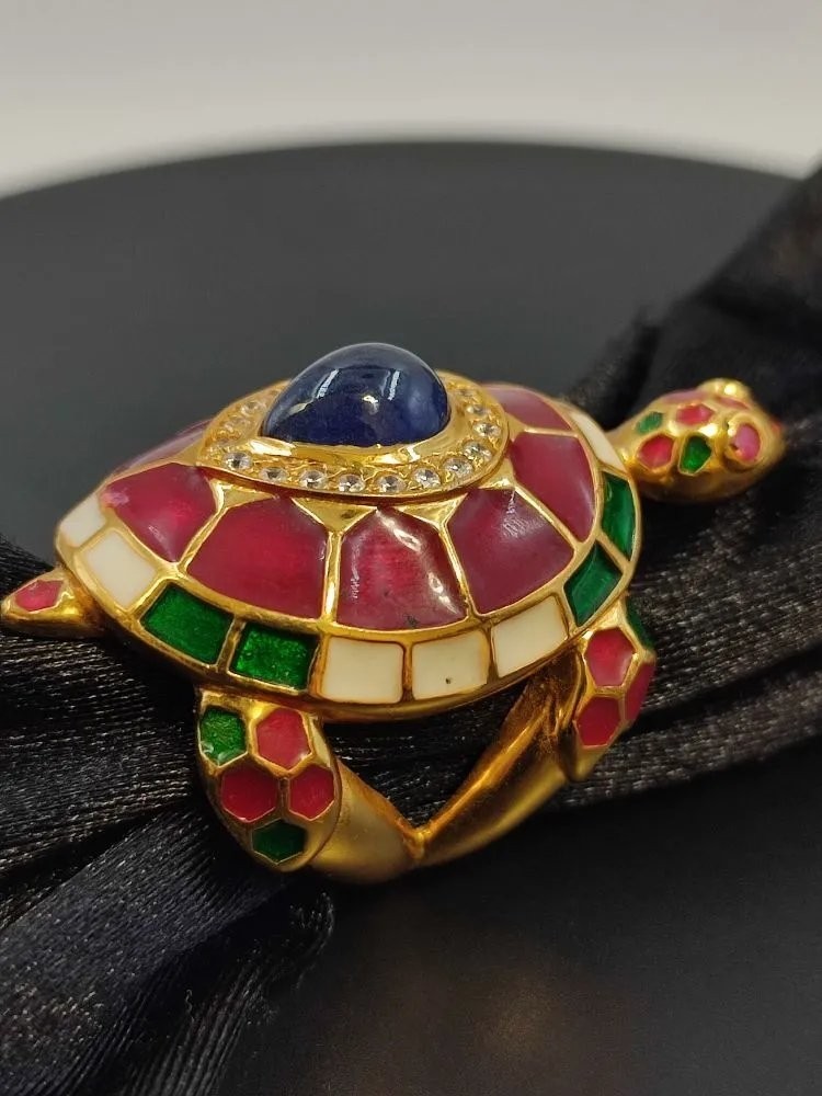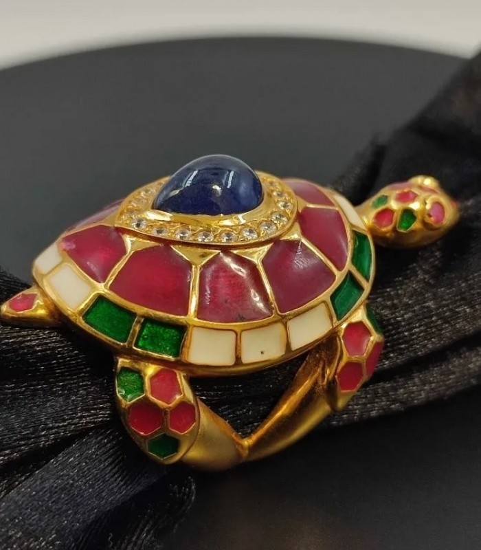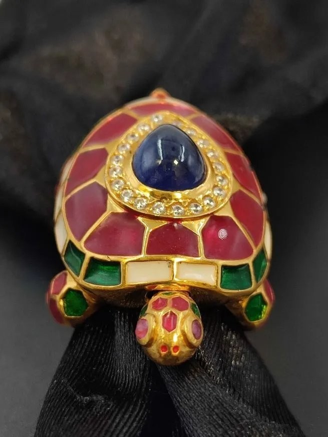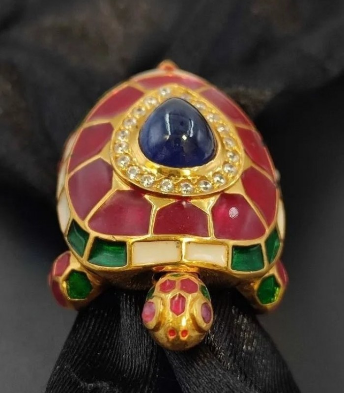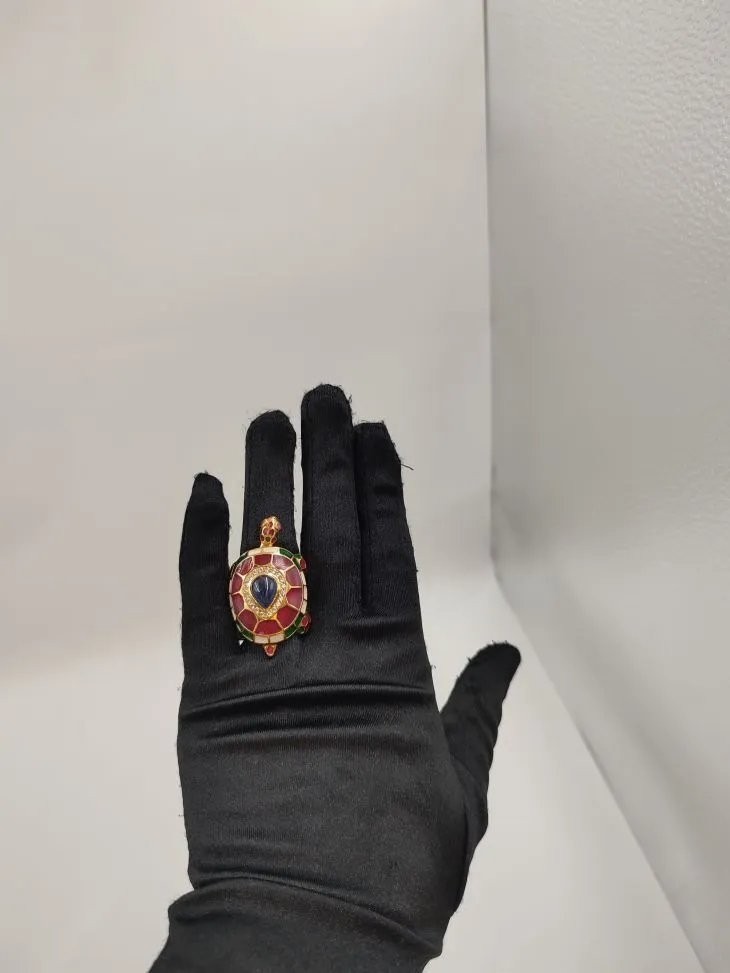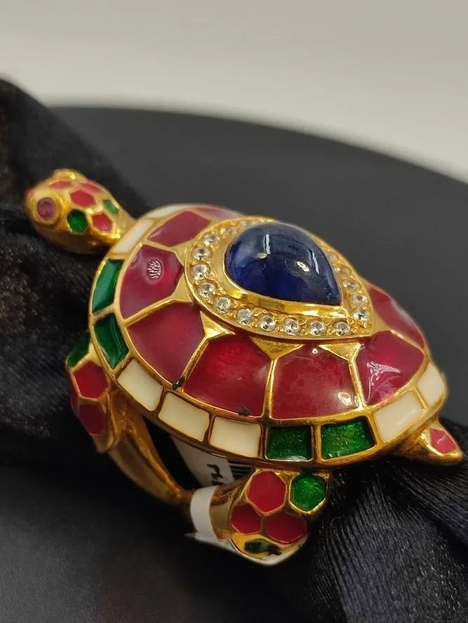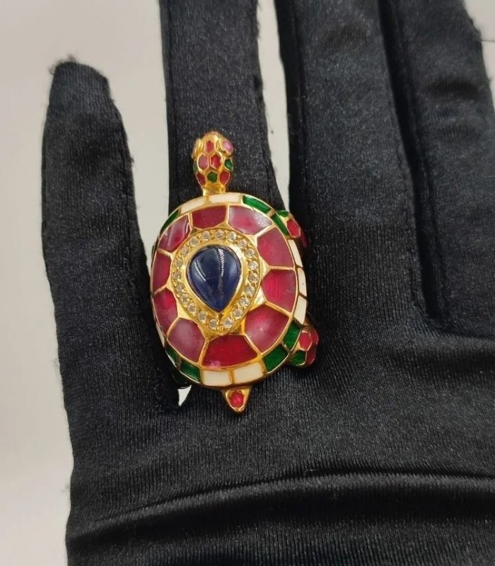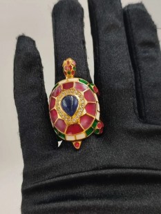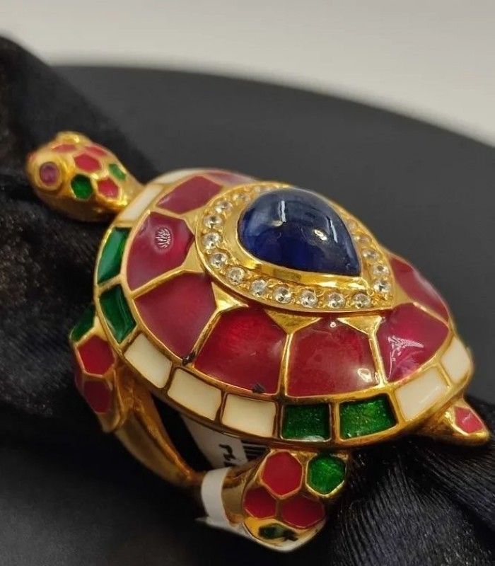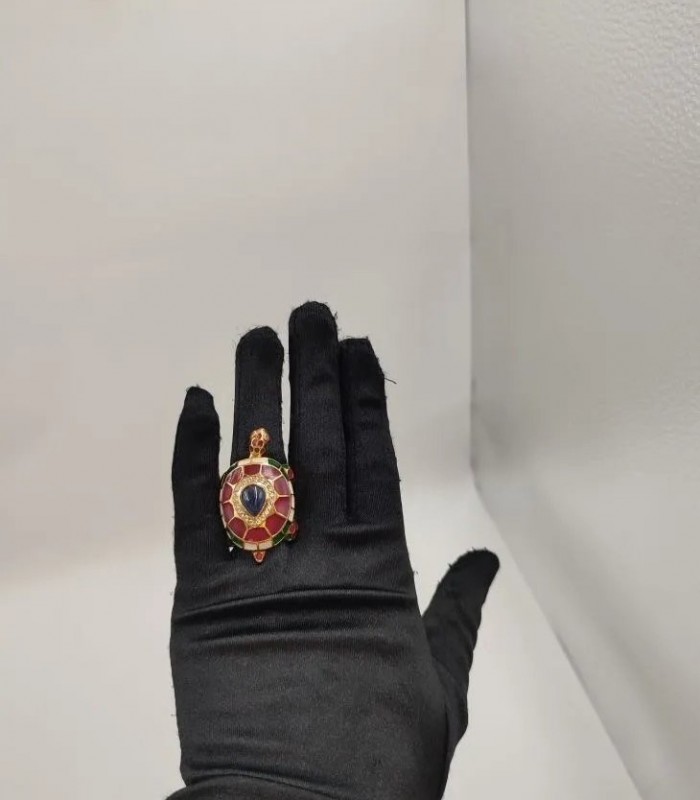 Mine İşçilikli Kaplumbağa Figürlü, Safirli Büyük Yüzük