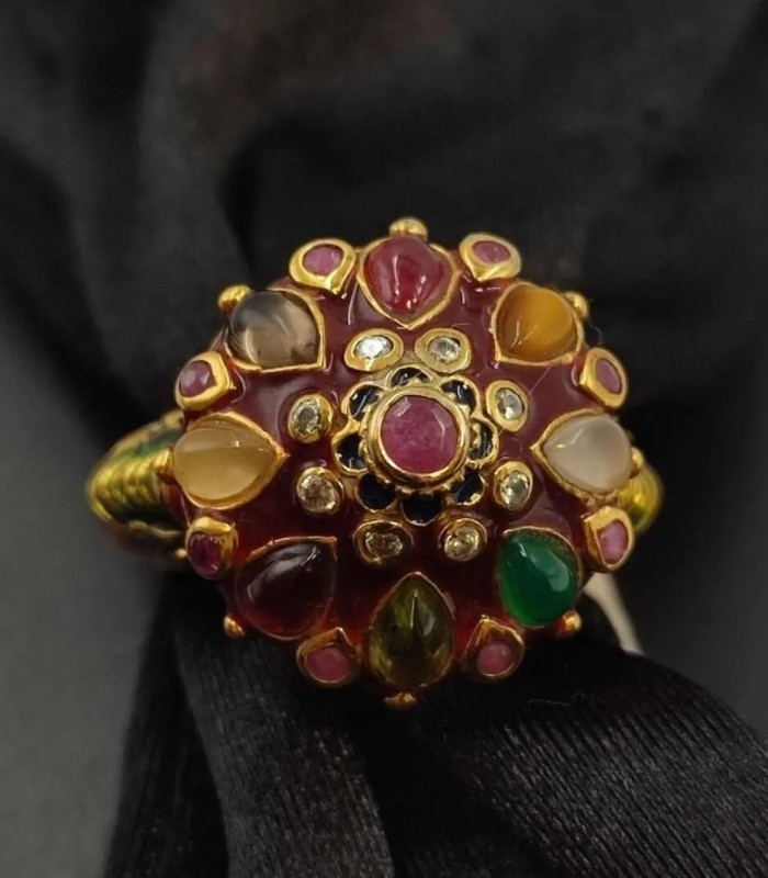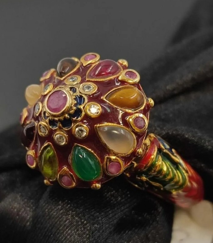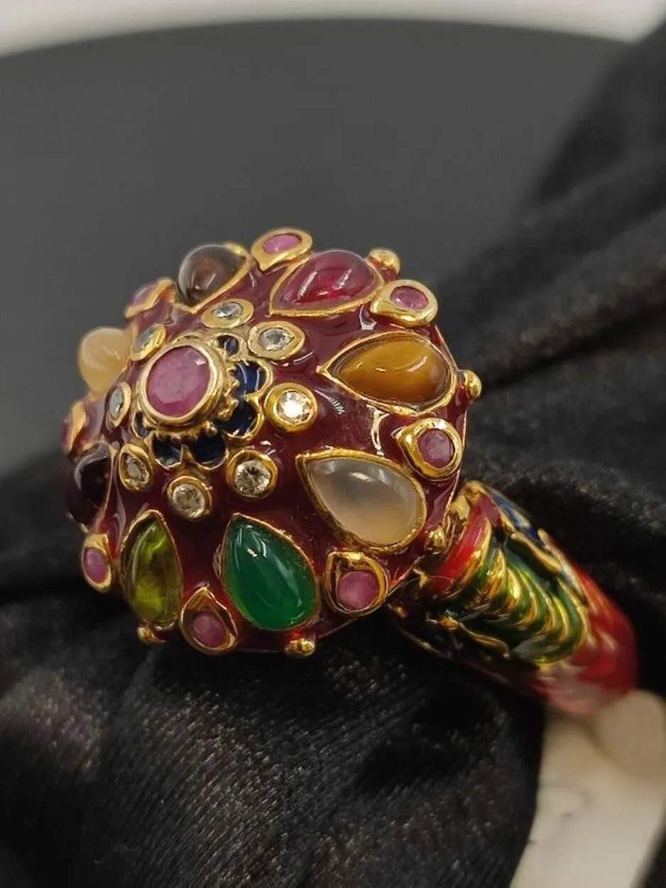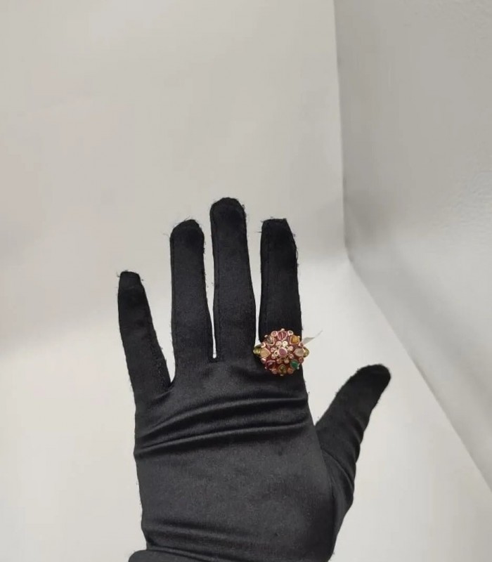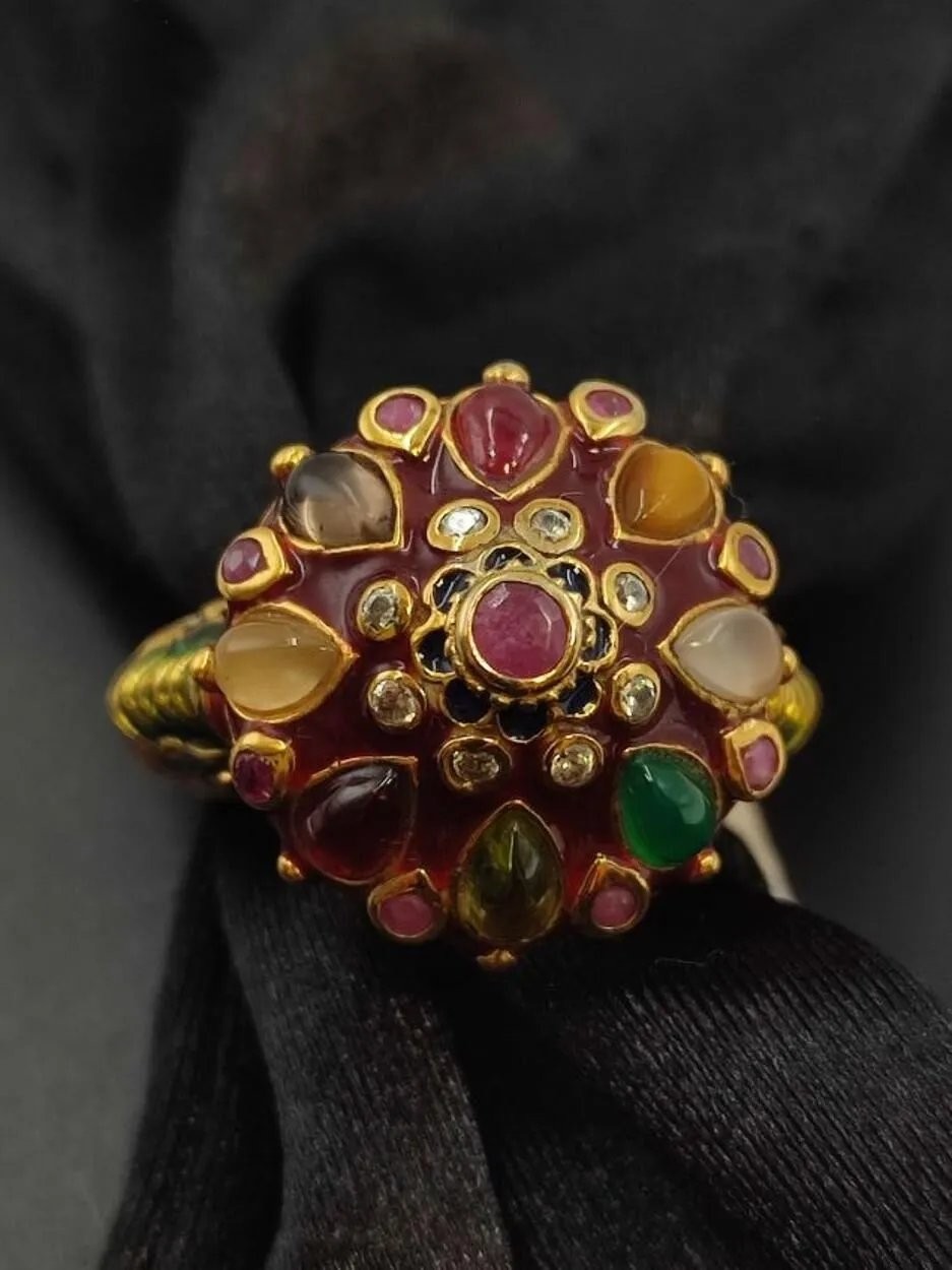 Karışık Taşlardan Oluşan Mine İşçilikli Farklı Tasarım Gümüş Yüzük.