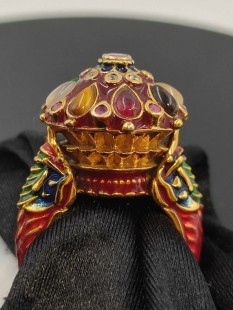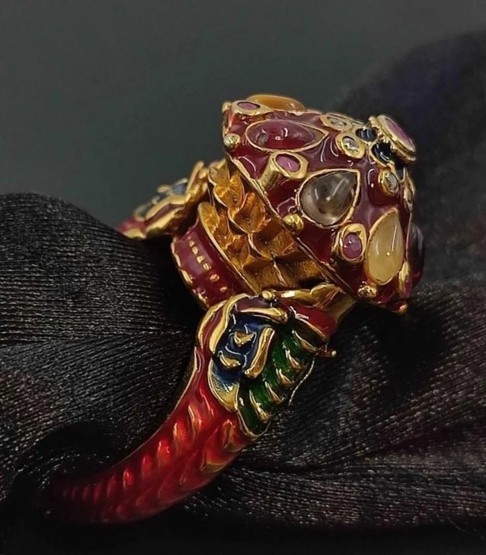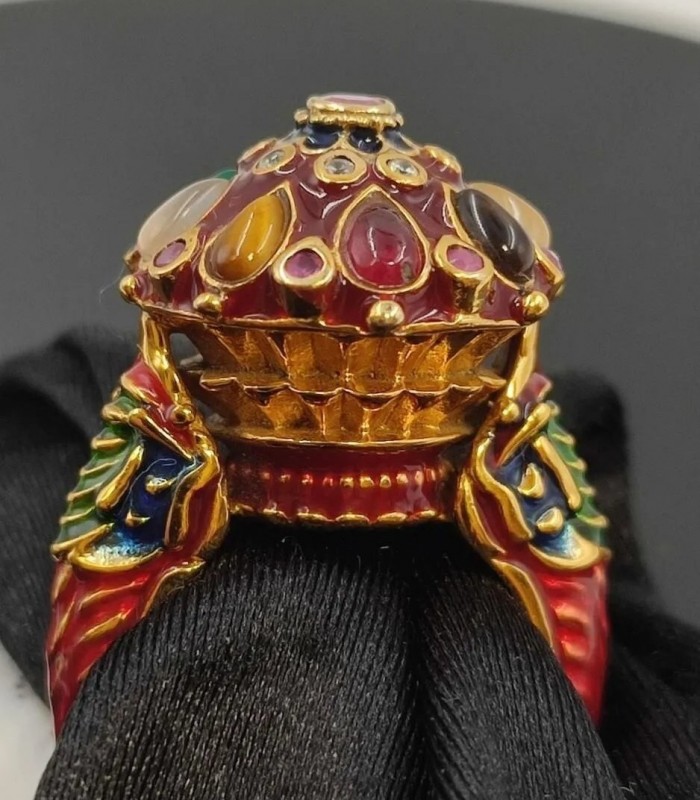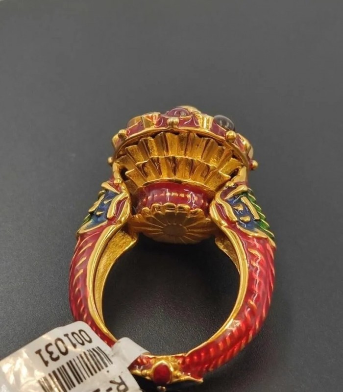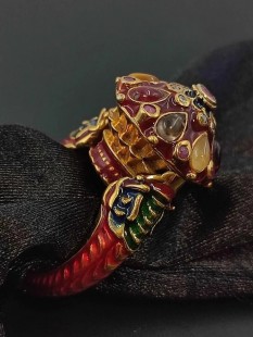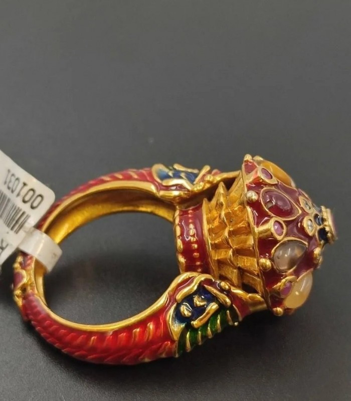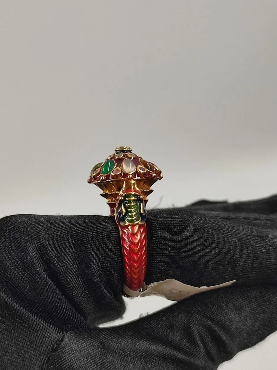 Karışık Taşlardan Oluşan Mine İşçilikli Farklı Tasarım Gümüş Yüzük.