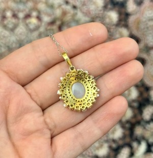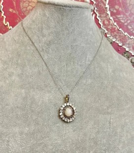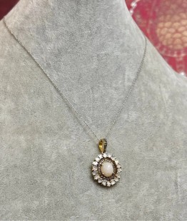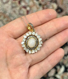 925 Gümüş, Doğal Opal v Polki Elmas Kolye
