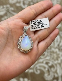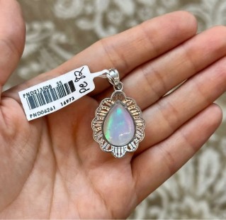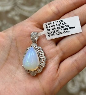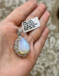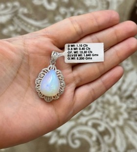 925 Gümüş, Doğal Opal v Elmas Kolye Ucu