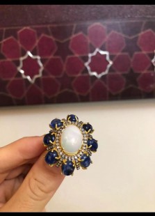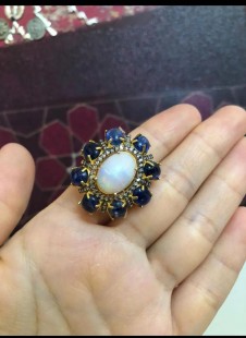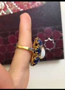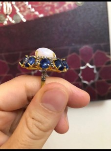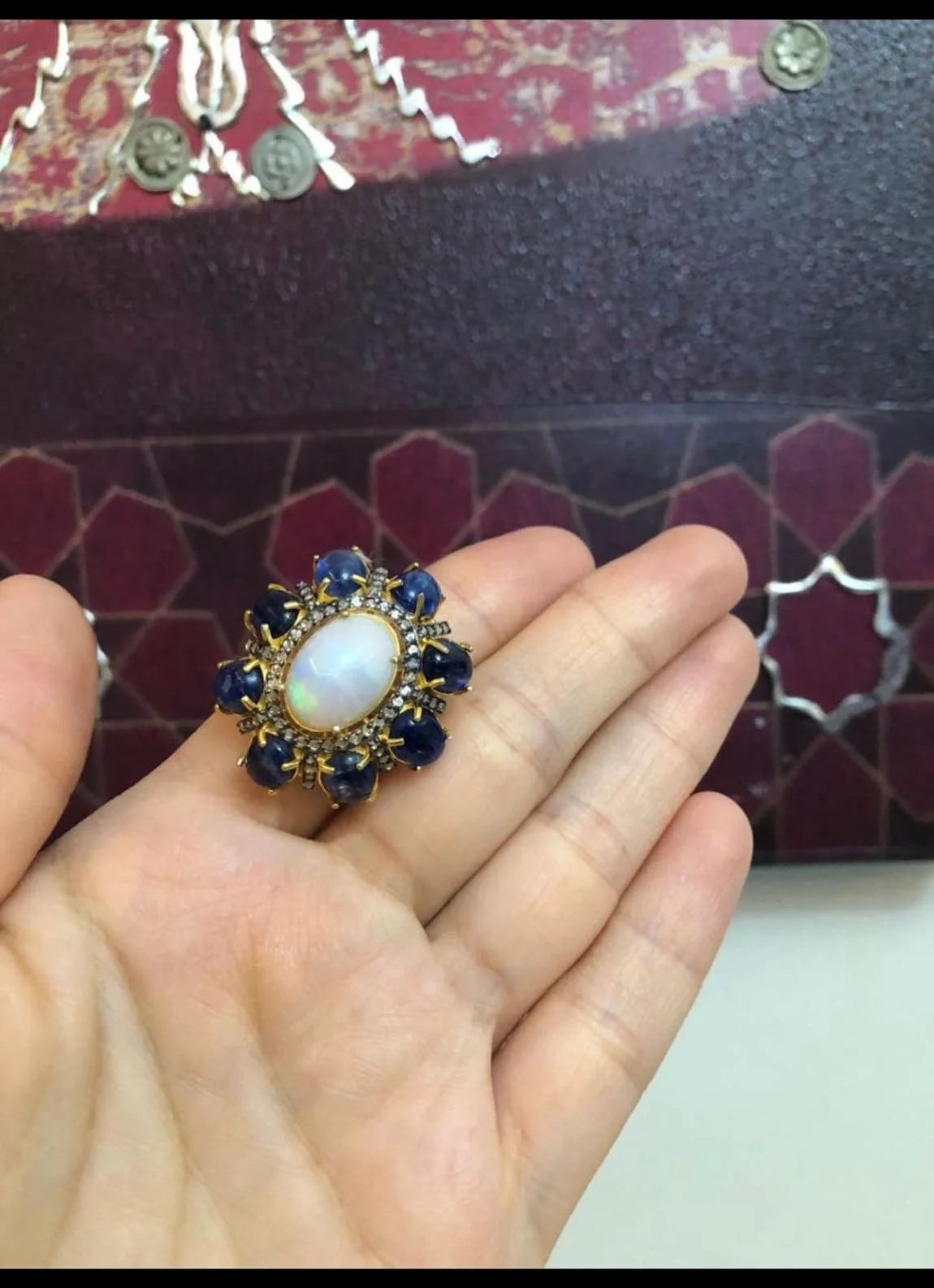 925 Gümüş Özel Altın Kaplama, Doğal Opal ve Tanzanit Taş Tasarımlı Elmas Yüzük