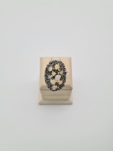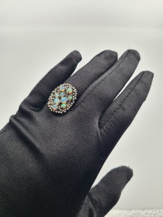 925 Ayar Gümüş, Opal ve Elmas Yüzük