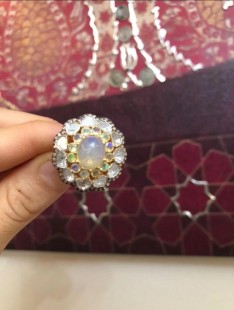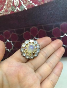 925 Gümüş, Opal v Polki Elmas Yüzük