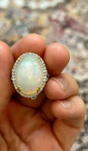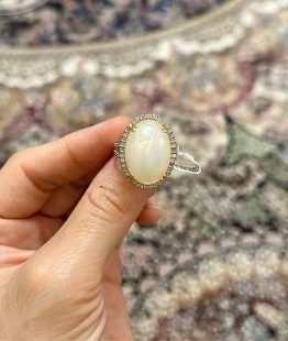 925 Gümüş, Doğal Opal v Elmas Yüzük