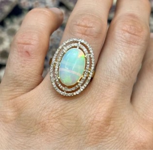 925 Gümüş, Doğal Opal v Çift Sıra Elmas Yüzük