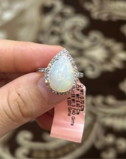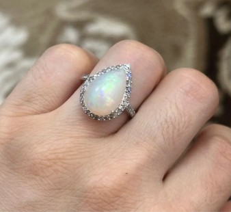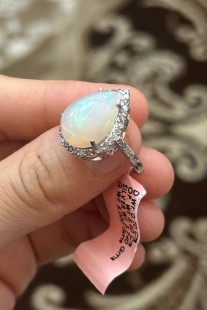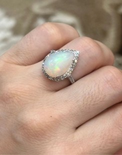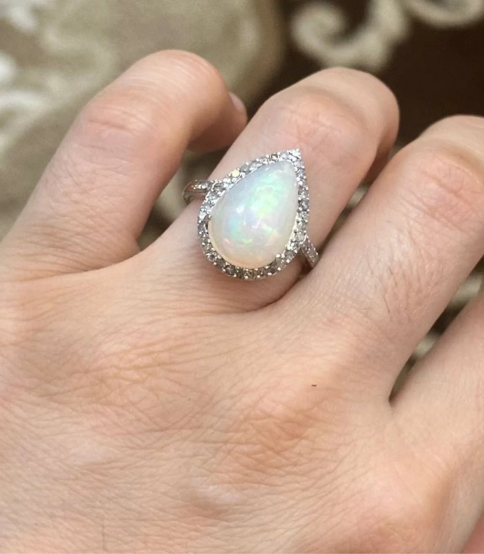 925 Gümüş, Doğal Opal v Elmas Yüzük