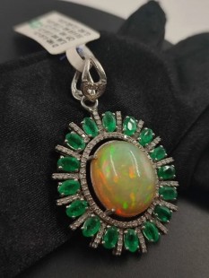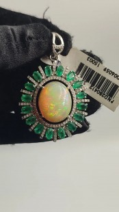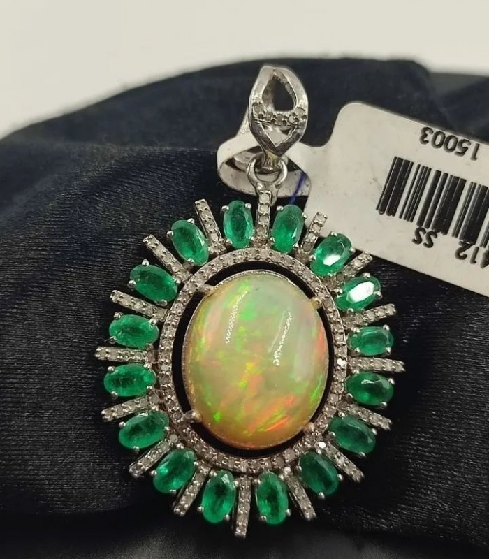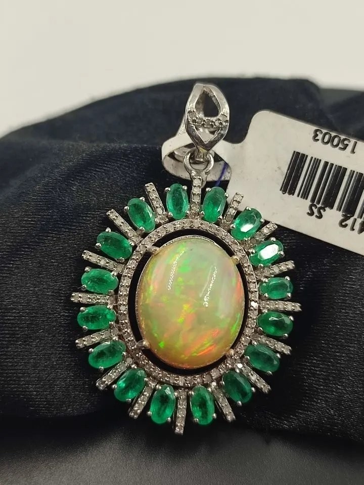 925 Gümüş, Doğal Çok İyi Kalite Opal v Zümrüt Elmas
