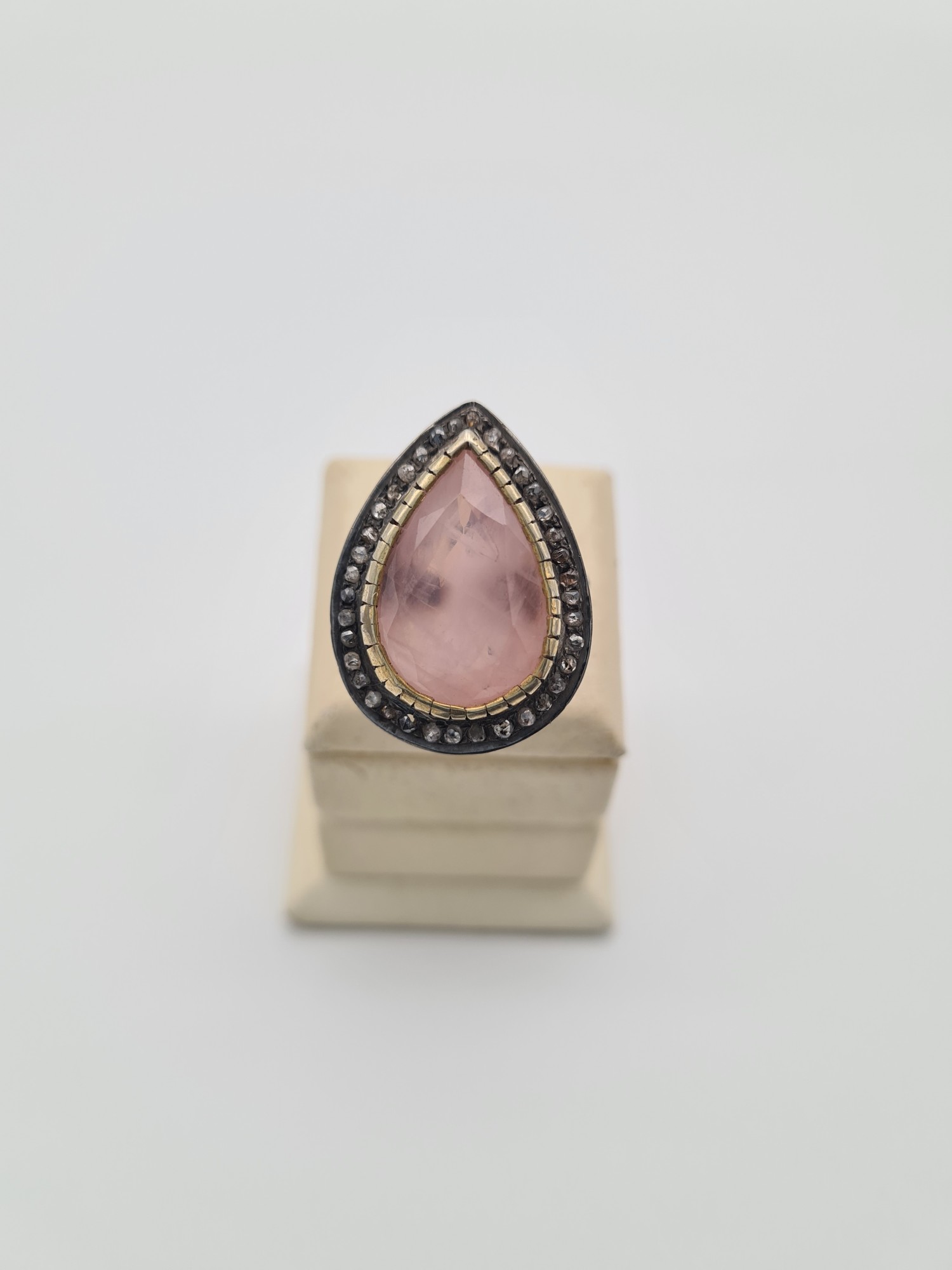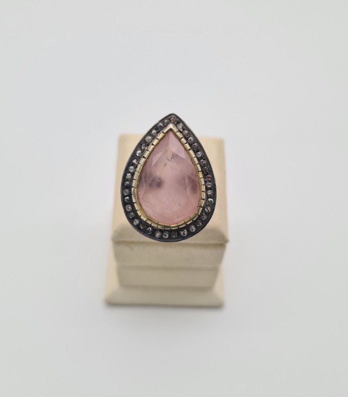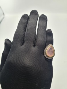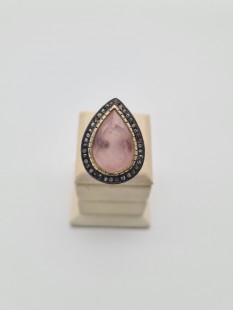 925 Ayar Gümüş, Pembe Kuvars ve Elmas Yüzük