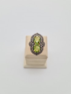 925 Ayar Gümüş, Peridot ve Elmas Yüzük
