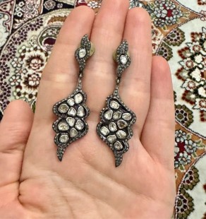 925 Ayar Gümüş ve Polki Elmas Küpe