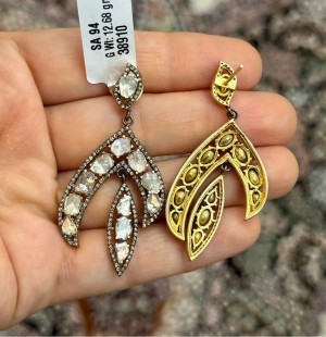 925 Gümüş Polki Elmas Sallantılı Küpe