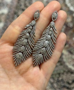 925 Gümüş, Sade Elmas Sallantılı Küpe
