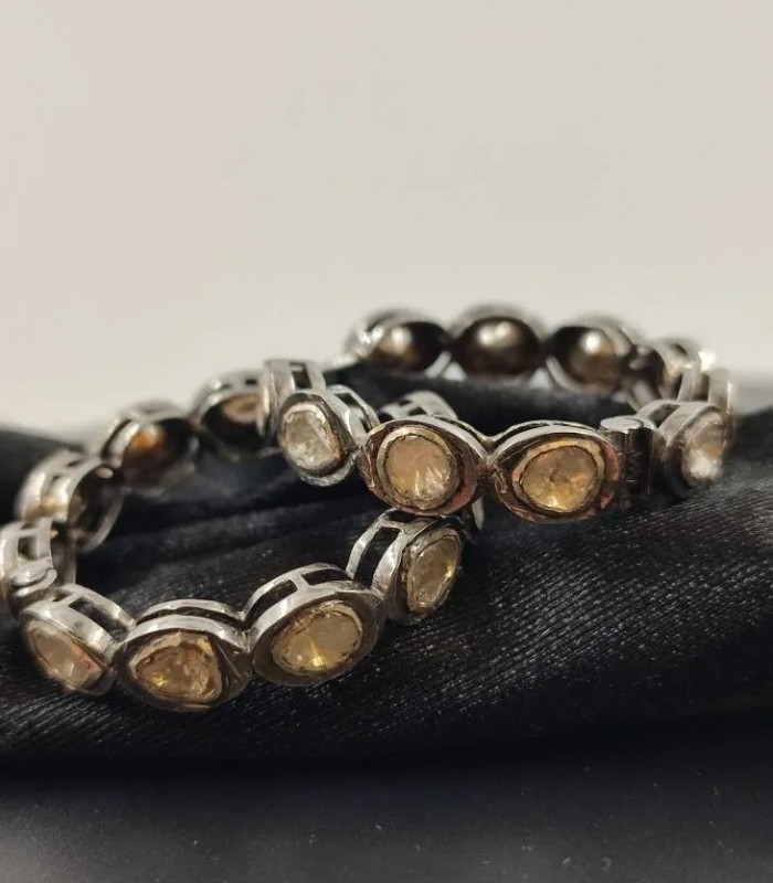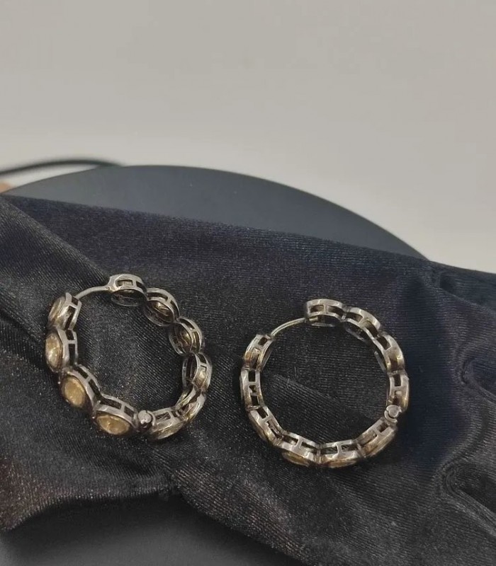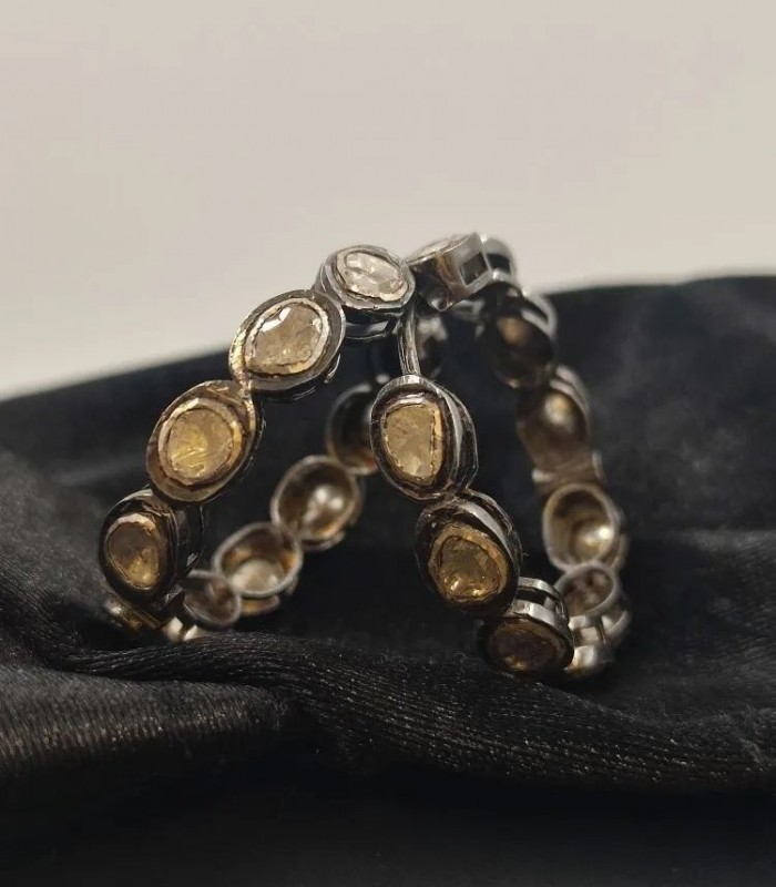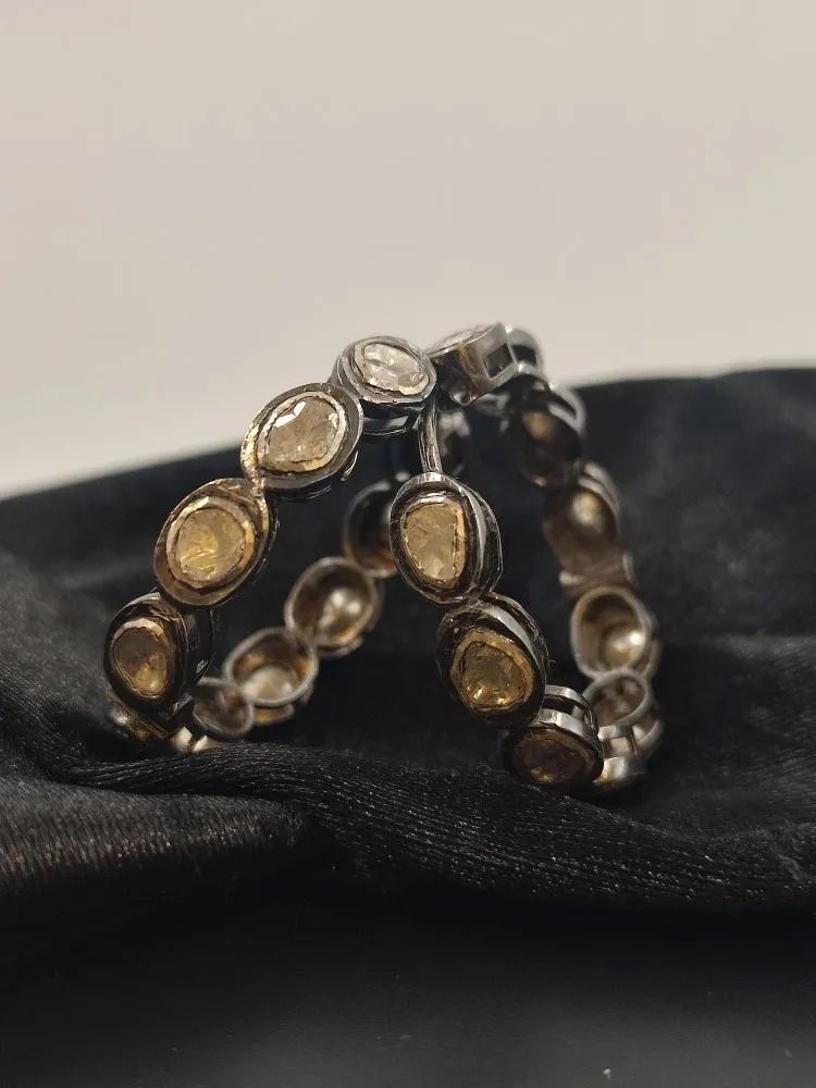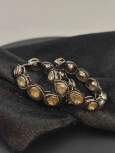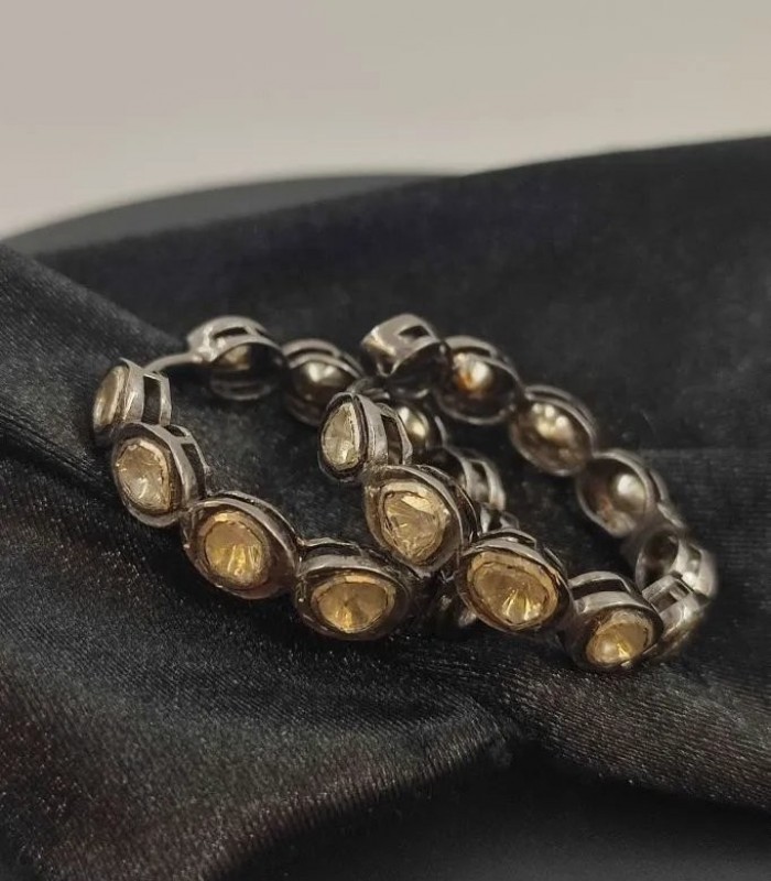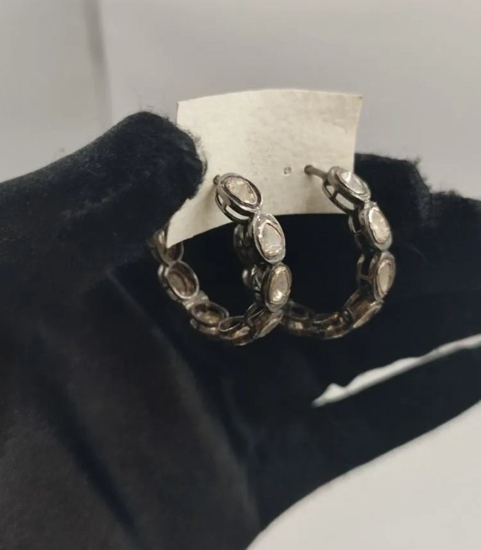 POLKİ ELMASLI HALKA KÜPE. 925 AYAR GÜMÜŞ ÜZERİNE