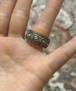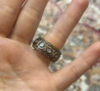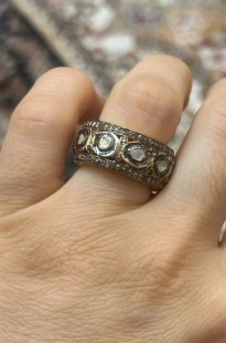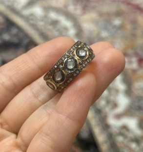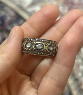 925 Gümüş v Polki Elmas Tamtur Yüzük