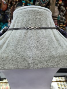 925 Ayar Gümüş, Safir, Akik ve Elmas Kumaşlı Kolye